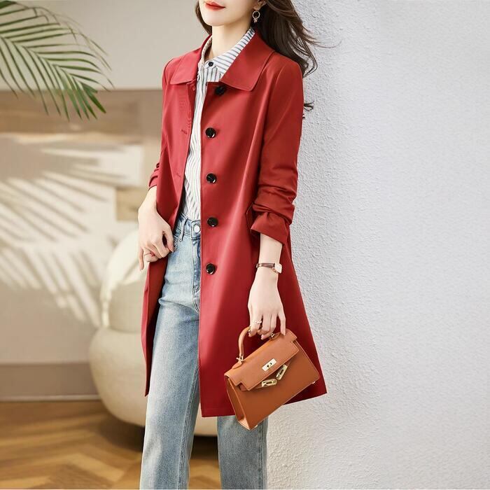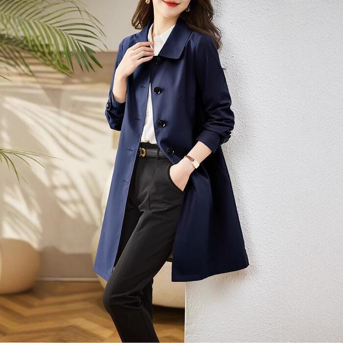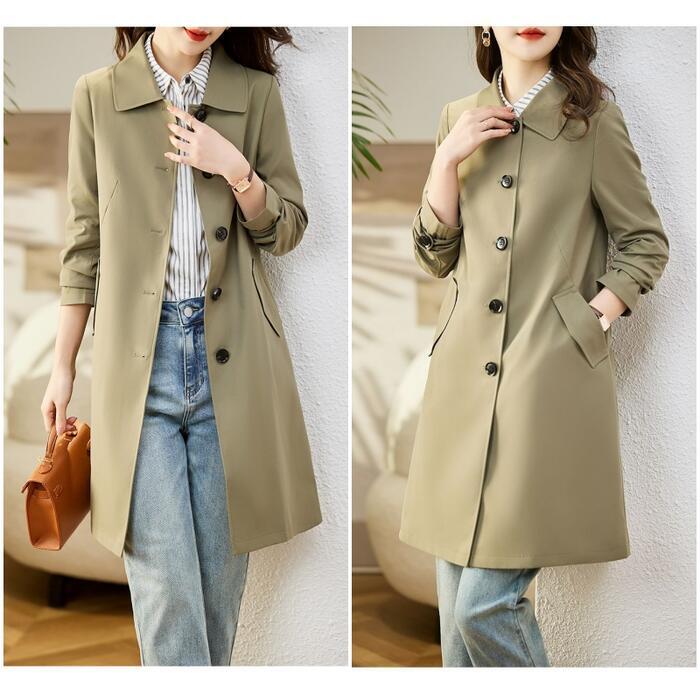全5色 大きいサイズ 体型カバー エレガント フェミニン おしゃれ シンプル ビジネス アウター コート ジャケット レディース きれいめ カジュアル 大人可愛い 春 秋 冬 ステンカラーコート テーラード 長袖 シングル グリーン 緑 ベージュ ネイビー レッド 赤 20代 30代 40代 50代 M L XL 2XL 3XL