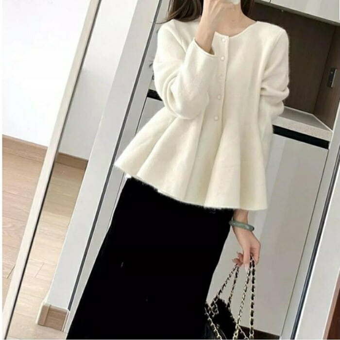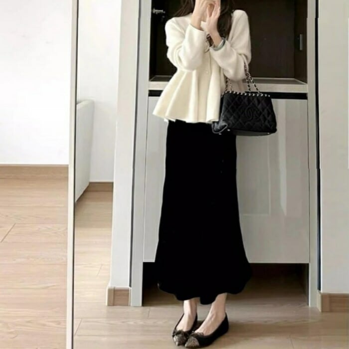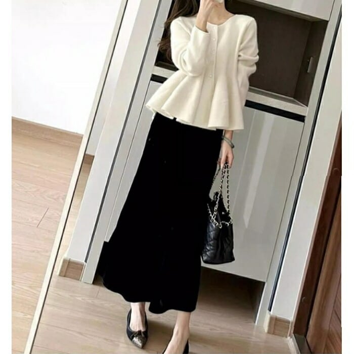 ペプラムトップス×ロングスカートの上下2点セット。