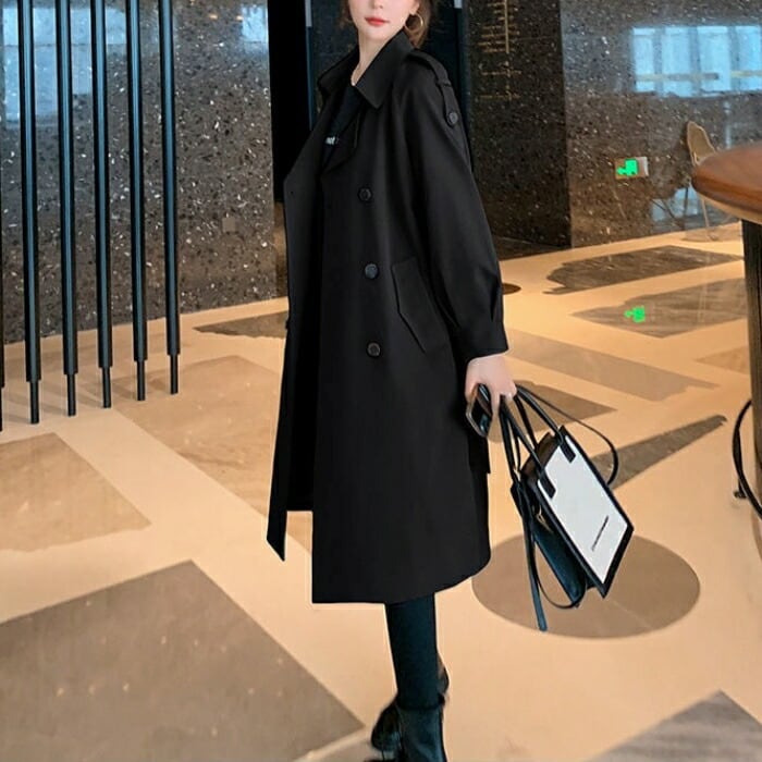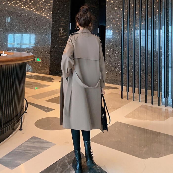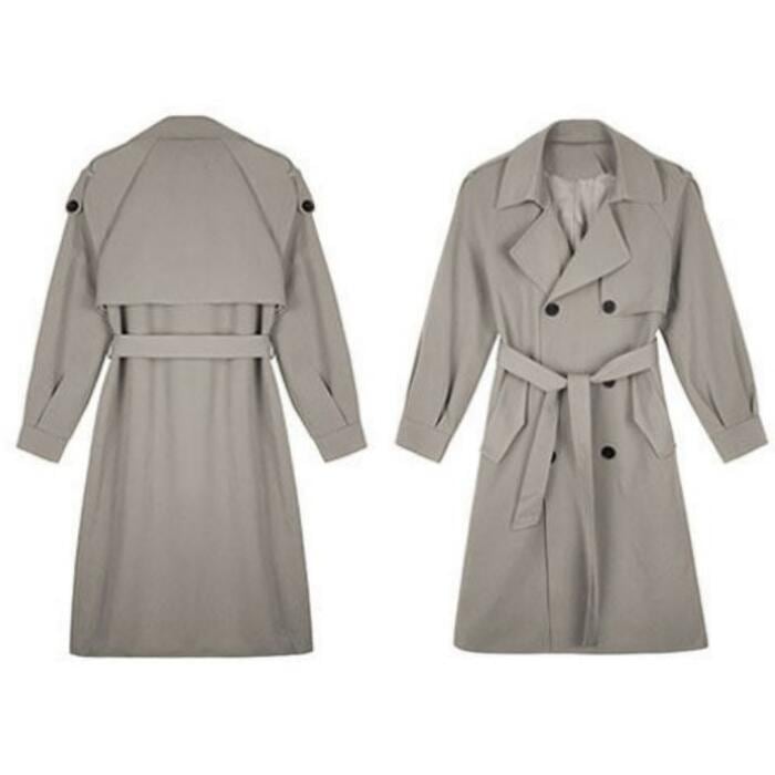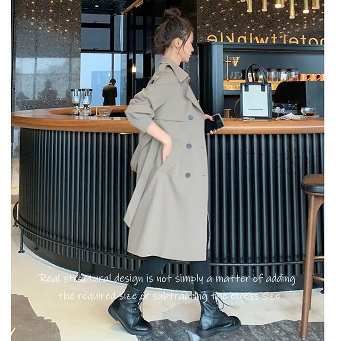 全2色 大きいサイズ 体型カバー エレガント フェミニン おしゃれ シンプル アウター コート ジャケット レディース きれいめ カジュアル 大人可愛い 春 秋 冬 トレンチコート チェスター ウエストベルト 長袖 羽織り ライトアウター グレー ブラック 黒 20代 30代 40代 50代 S M L XL