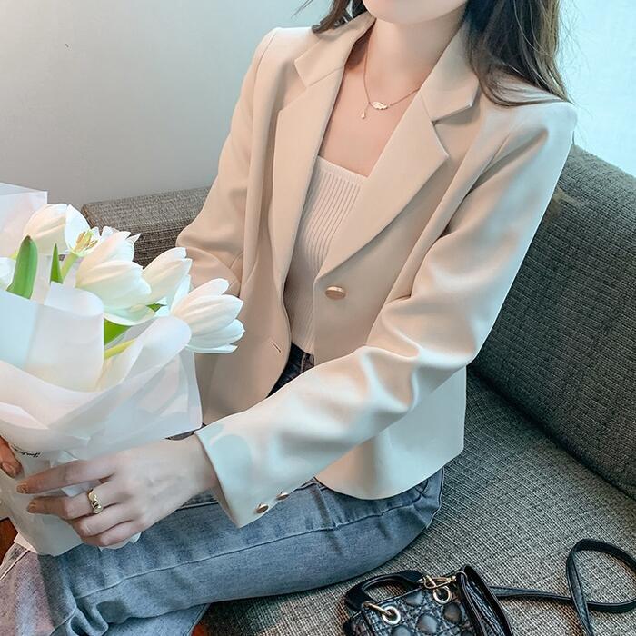 テーラードカラーに、ゴールドボタンが気品を添えるショート丈ジャケット。