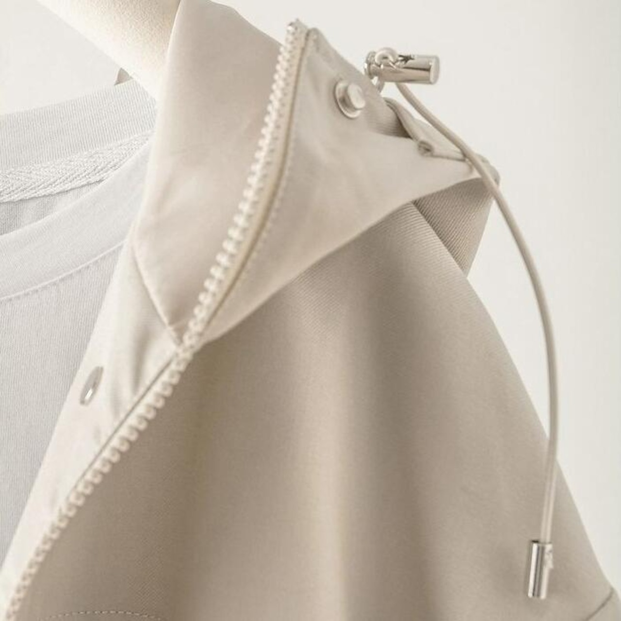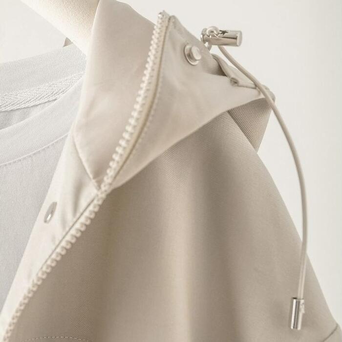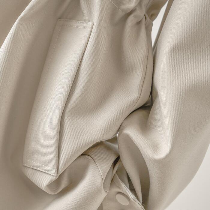 ドローストリングをギュッと絞ることでメリハリのあるペプラムシルエットに、緩めればリラックス感のあるオーバーサイズにと、その日の気分やボトムスに合わせて表情を変えられる一着です。