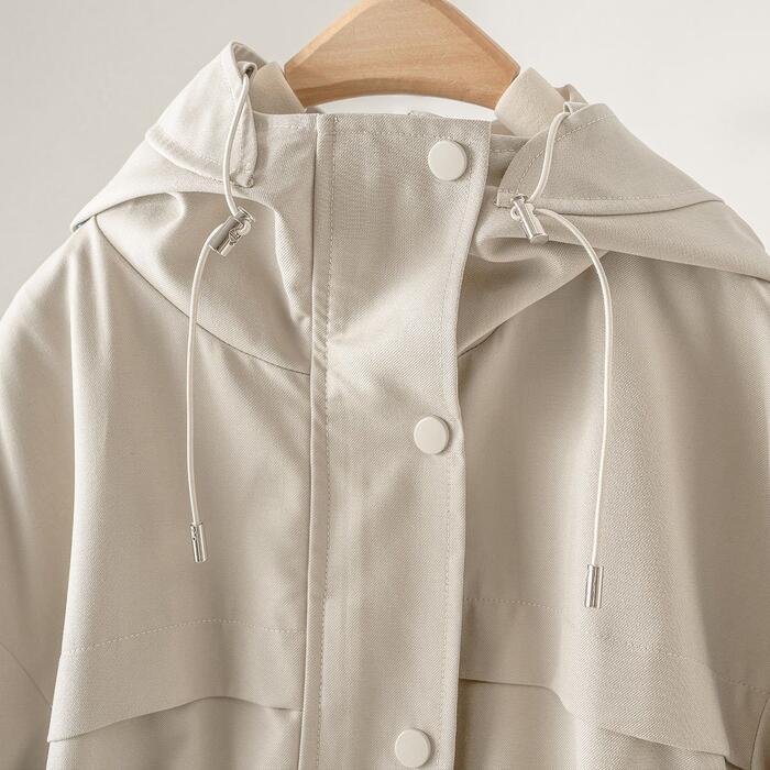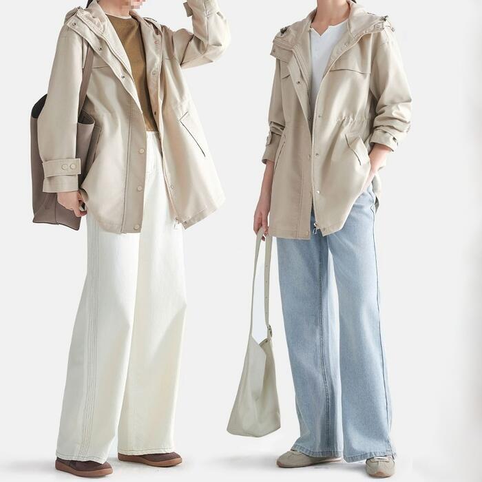 大きいサイズ エレガント フェミニン おしゃれ シンプル アウトドア アウター コート ジャケット レディース きれいめ カジュアル 大人可愛い 春 秋 冬 マウンテンパーカー ウインドブレーカー フード ミディ丈 長袖 羽織り ライトアウター ベージュ 20代 30代 40代 50代 M L XL 2XL