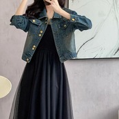 大きいサイズ 体型カバー エレガント フェミニン おしゃれ シンプル アウター コート ジャケット レディース きれいめ カジュアル 大人可愛い 春 秋 冬 デニムジャケット Gジャン ブルゾン 長袖 ショート丈 ライトアウター ブルー 青 20代 30代 40代 50代 S M L XL