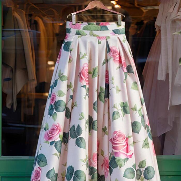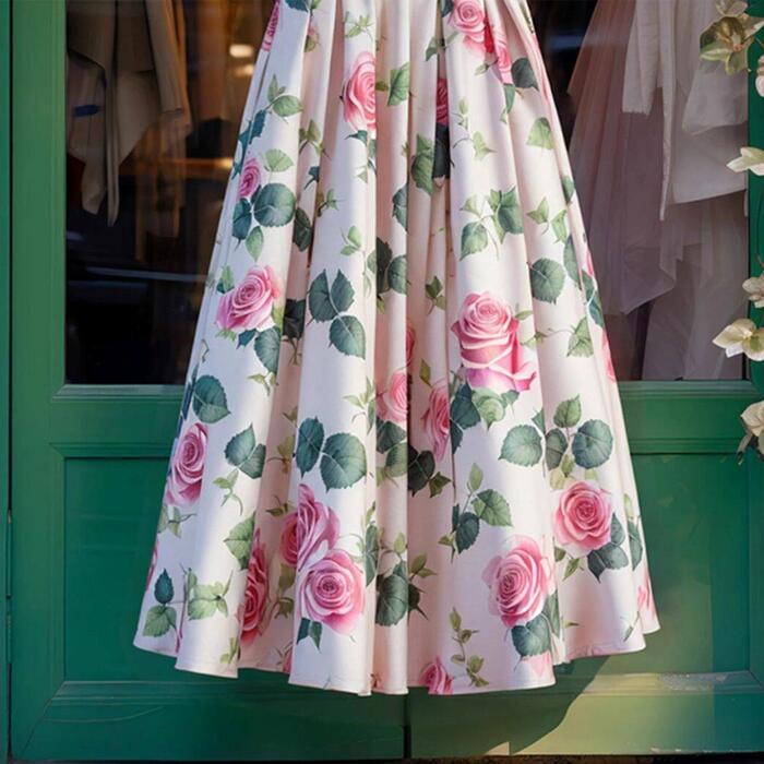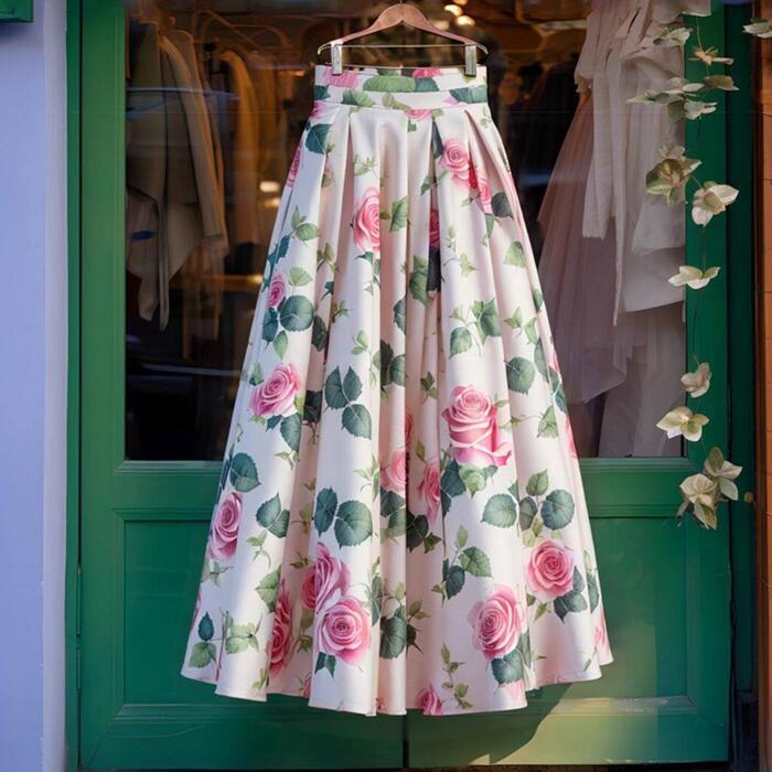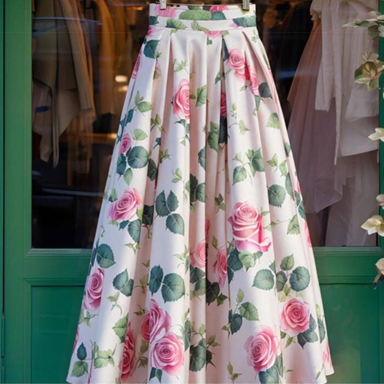 大きいサイズ 体型カバー エレガント フェミニン おしゃれ ヴィンテージ ボトムス スカート レディース きれいめ カジュアル 大人可愛い 春 夏 秋 冬 花柄 ローズ フラワー フレアスカート クラシカル ミモレ丈 ハイウエスト ピンク 20代 30代 40代 50代 S M L XL 2XL