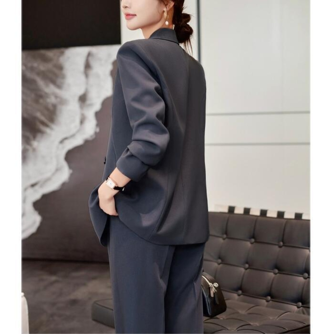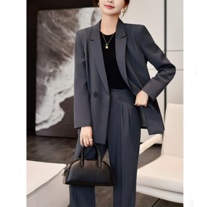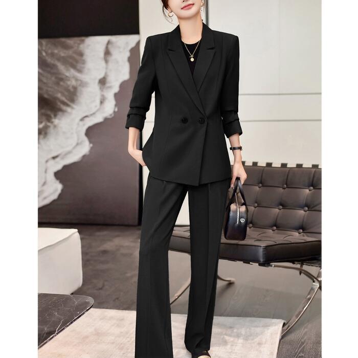 ビジネスシーンからフォーマルな場面まで使える、大人の品格漂うパンツスーツです。