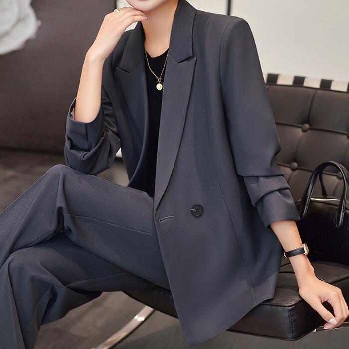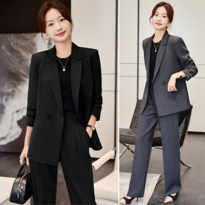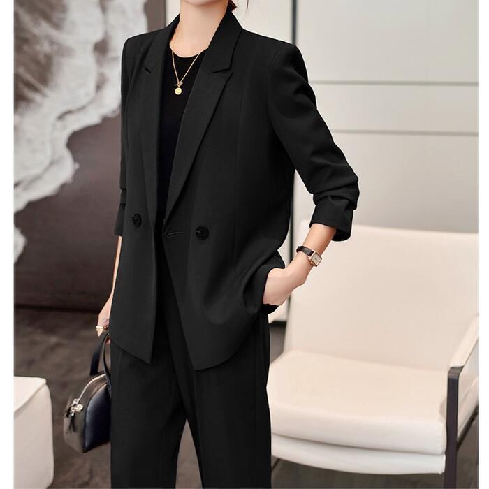 全2色 大きいサイズ 体型カバー エレガント フェミニン おしゃれ 2点セット 卒業式 卒園式 入園式 入学式 ママスーツ セレモニー 七五三 お宮参り セットアップ スーツ ジャケット パンツ 春 秋 冬 レディース きれいめ カジュアル 大人可愛い テーラード センタープレス 長袖 フォーマル ビジネス グレー ブラック 黒 20代 30代 40代 50代 S M L XL 2XL 3XL