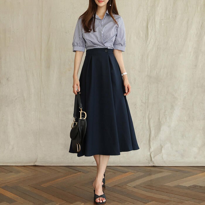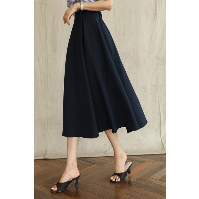 凛としたネイビーカラーが、知性と気品を引き立てるフレアスカート。