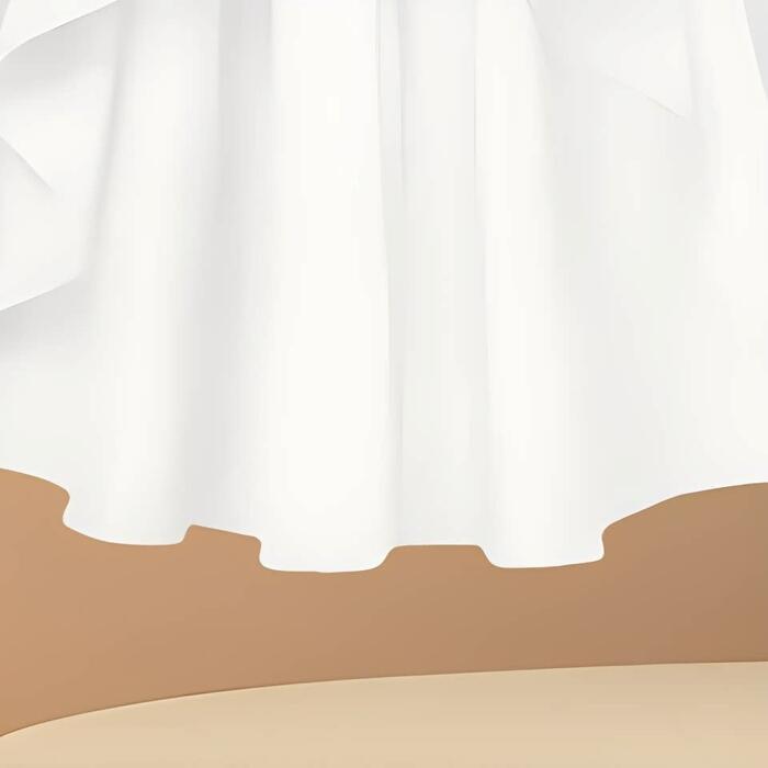 動くたびに揺れるドレープが女性らしさを引き立て、シンプルながらも存在感のある一着です。