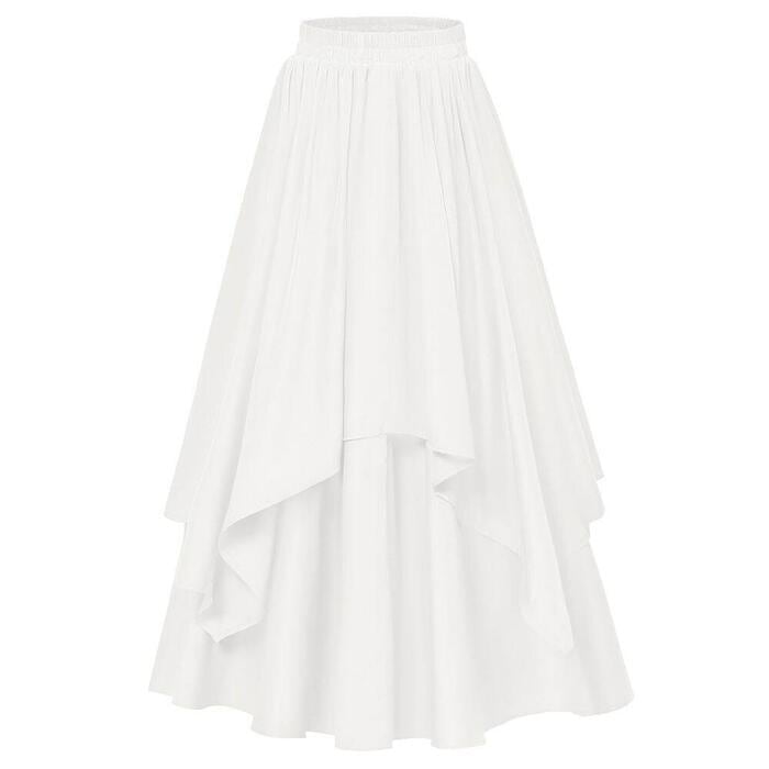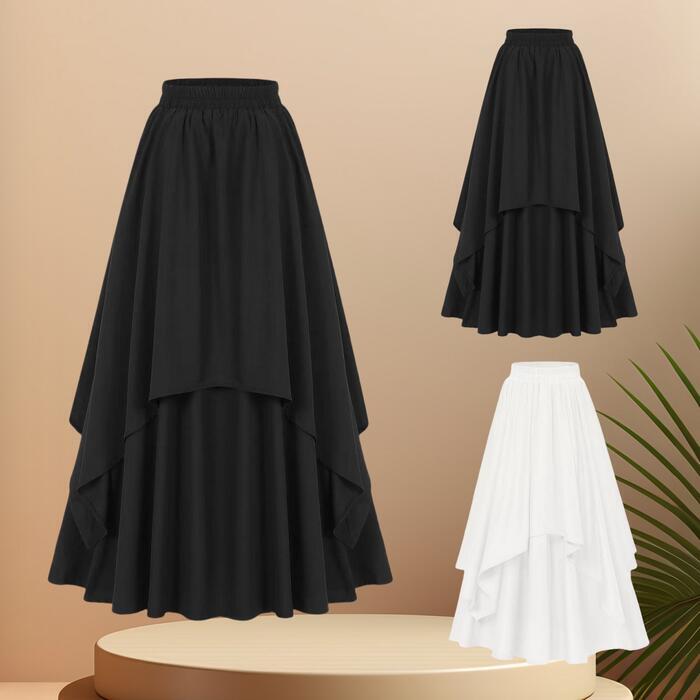 全2色 大きいサイズ 体型カバー エレガント フェミニン おしゃれ 楽ちん シンプル モード ボトムス スカート レディース きれいめ カジュアル 大人可愛い 春 夏 秋 レイヤード フリル ロング丈 ウエストゴム ハイウエスト フレアスカート ホワイト 白 ブラック 黒 20代 30代 40代 50代 M L XL 2XL 3XL 4XL