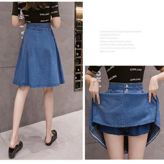 めくれや露出を気にせず着用できる、インナーショートパンツ付きのデニムスカート。