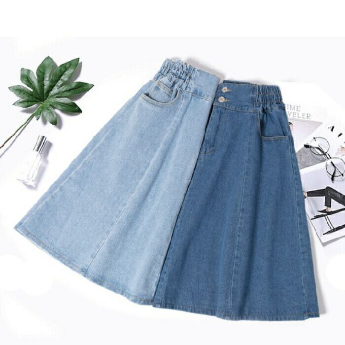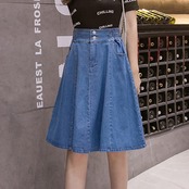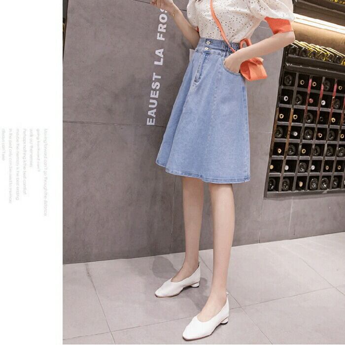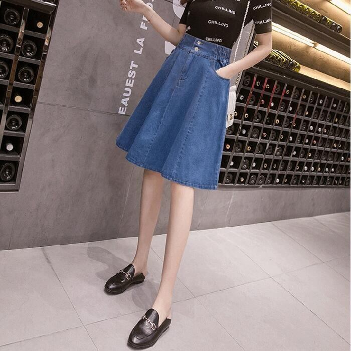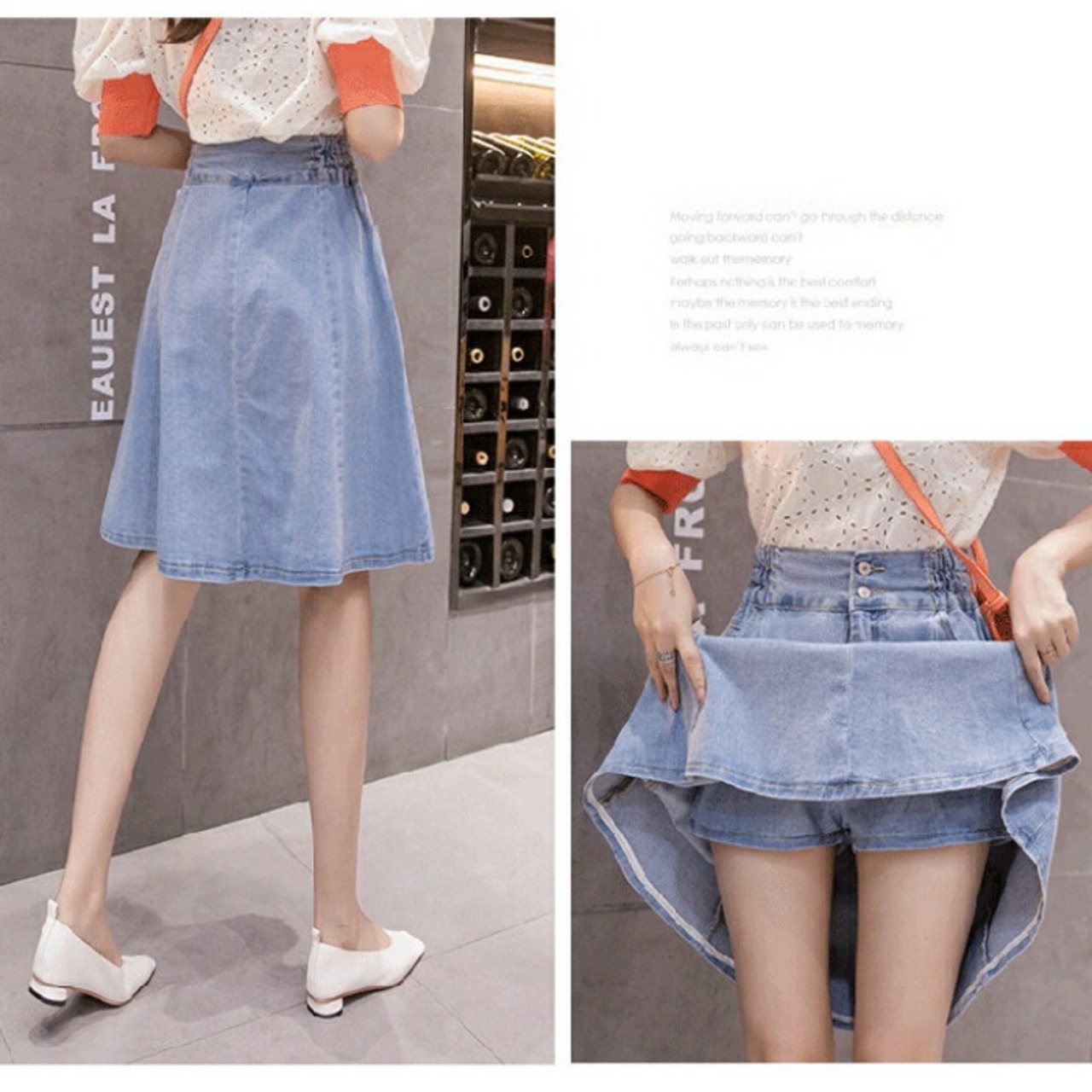 全2色 大きいサイズ 体型カバー エレガント フェミニン おしゃれ 楽ちん シンプル ボトムス スカート レディース きれいめ カジュアル 大人可愛い 春 夏 秋 冬 デニム インナーパンツ ひざ丈 ウエストゴム ハイウエスト フレアスカート オールシーズン ブルー 青 20代 30代 40代 50代 S M L XL 2XL