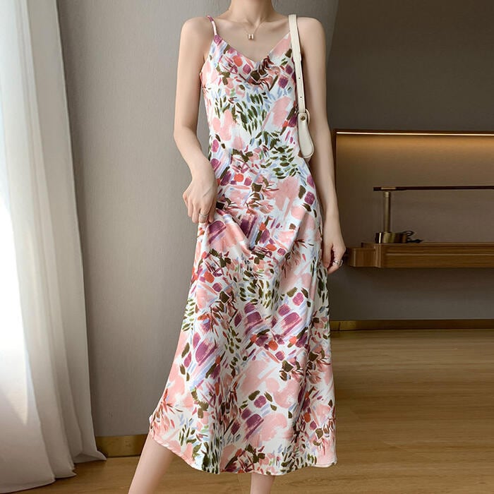 水彩画のような抽象的なペイント柄が、アートのように美しいキャミソールワンピース。