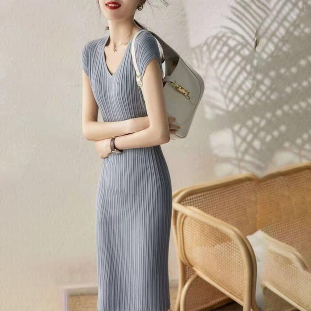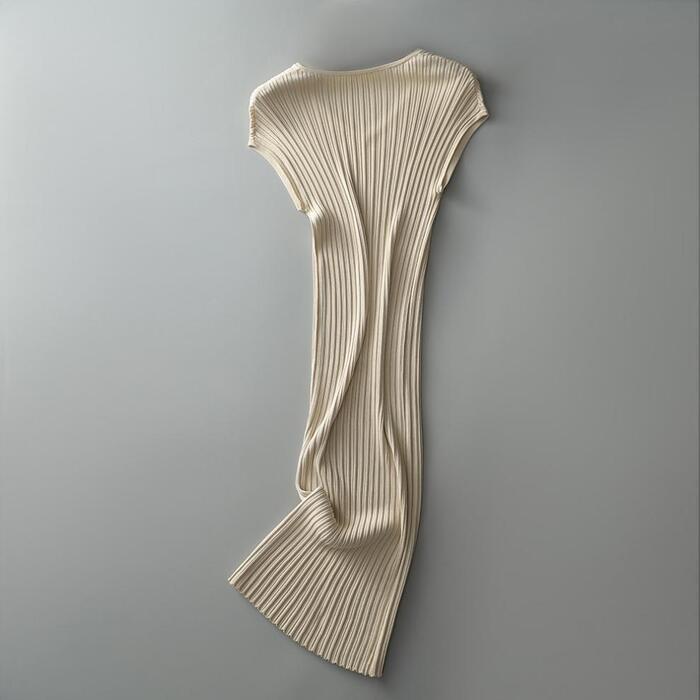 繊細な細リブ加工が全身に施されたニットワンピース。