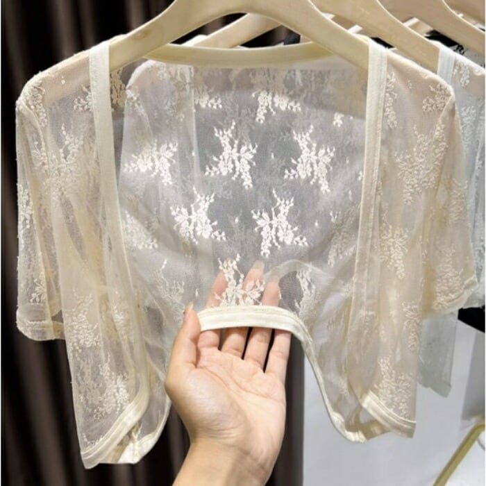 繊細な花柄レースを贅沢に使用し、装いに上品な華やかさをプラスするショート丈ボレロです。