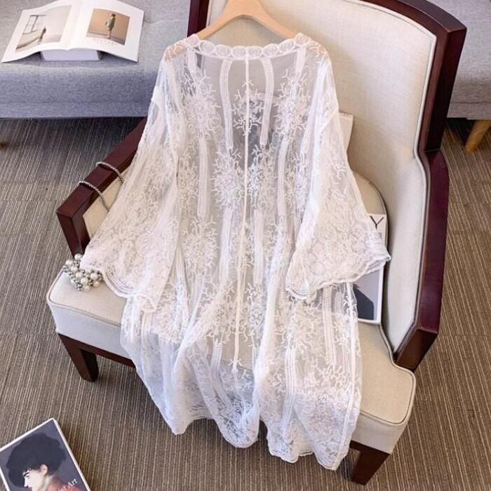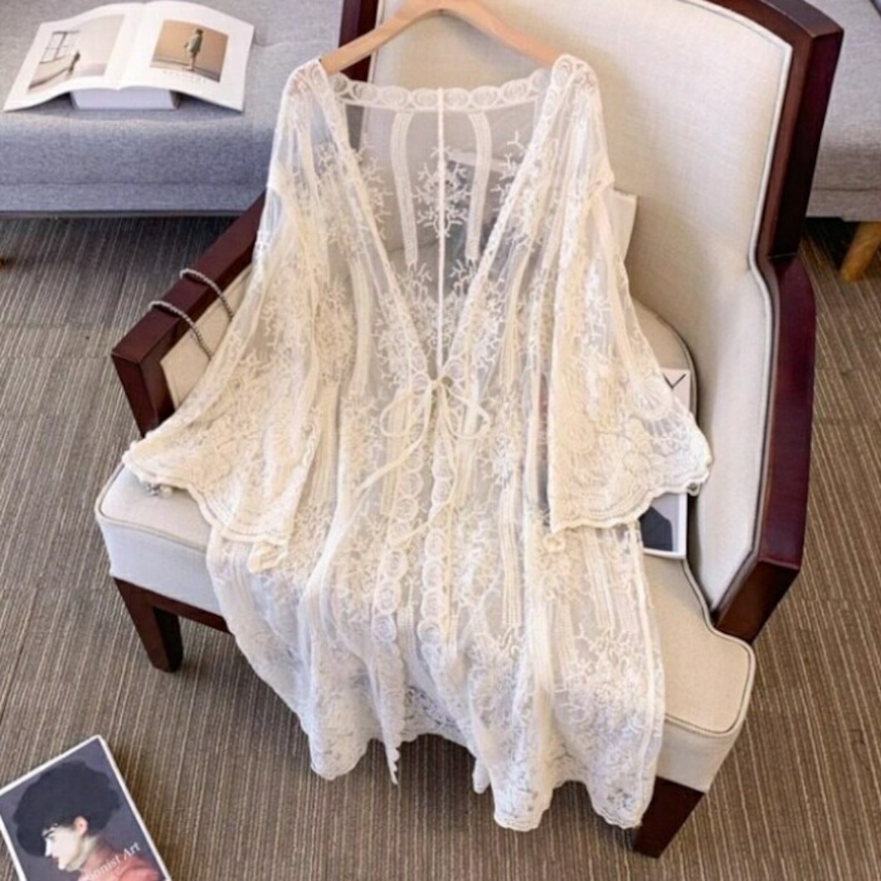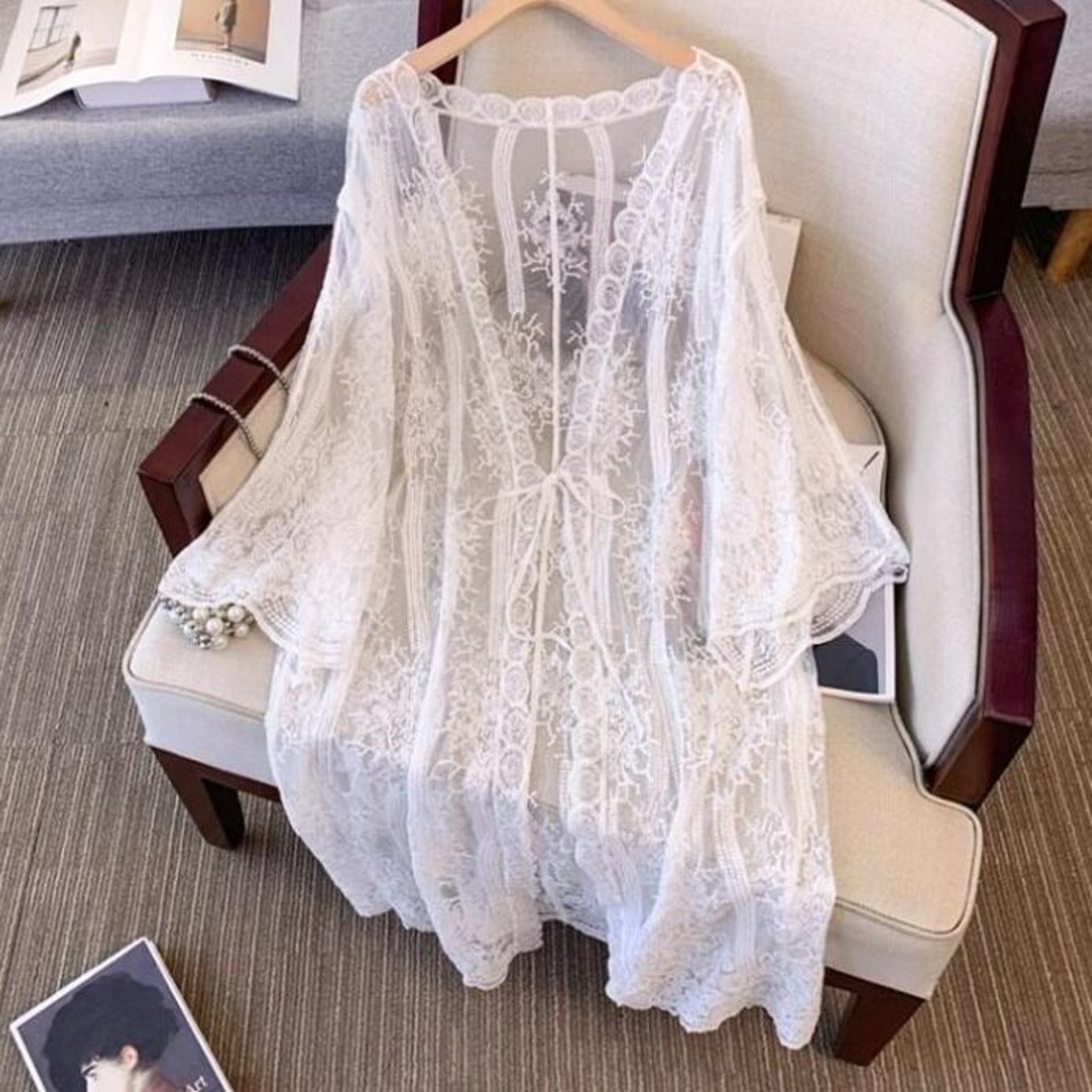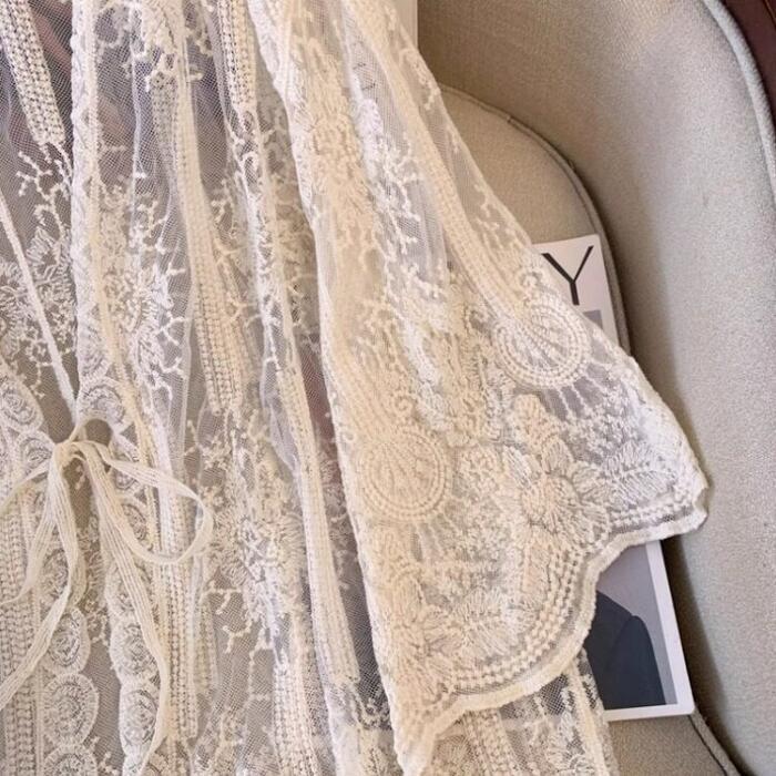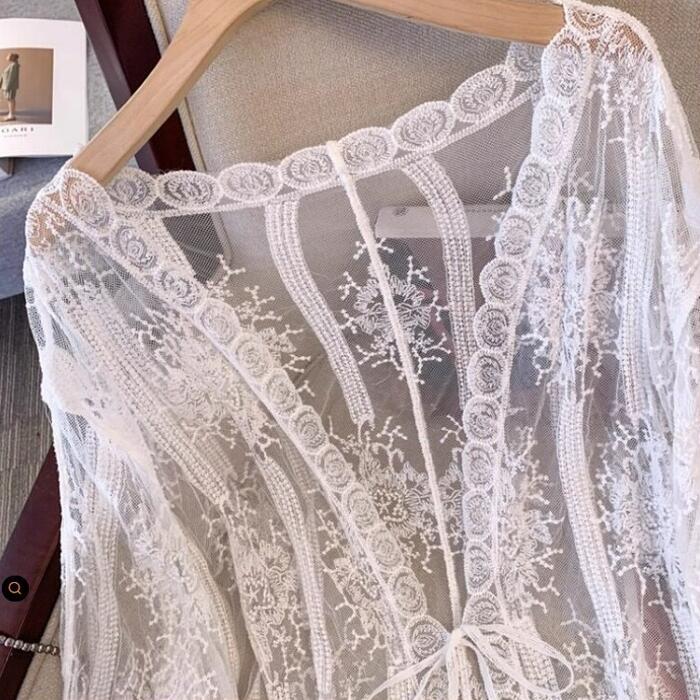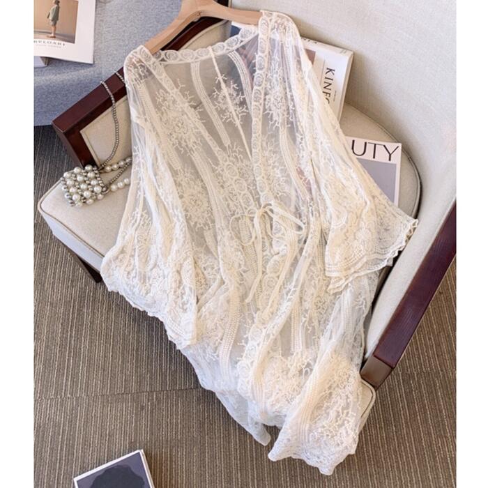総レースの贅沢な透け感が目を惹くカーディガン。