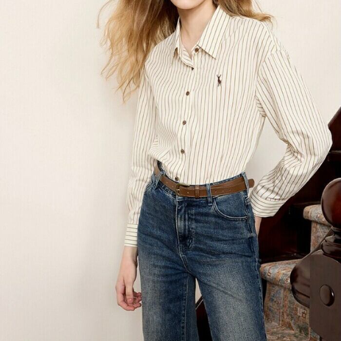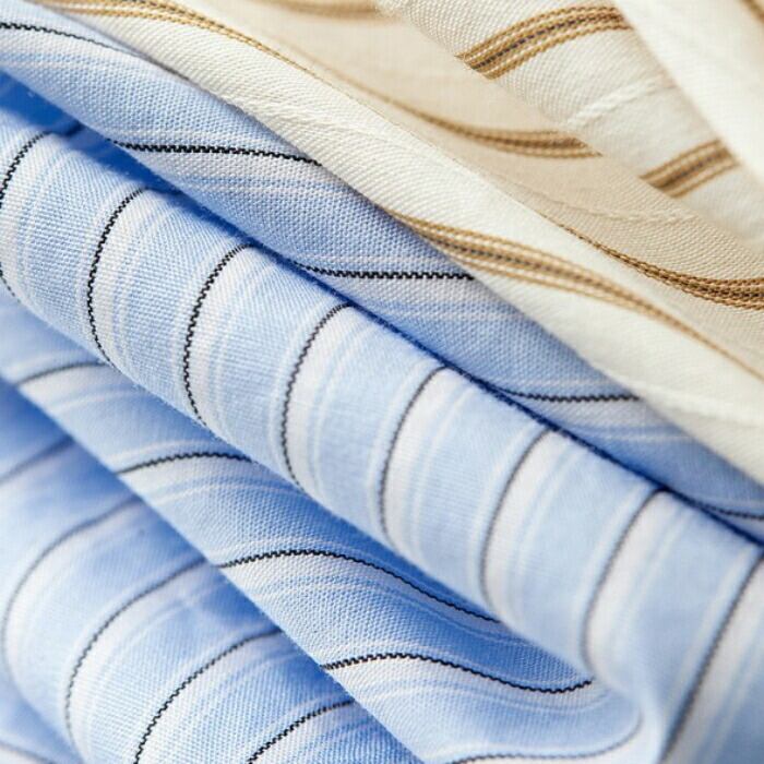 細やかなストライプ柄がトラッドな表情の長袖シャツ。