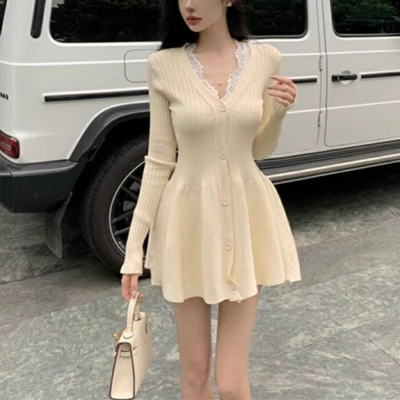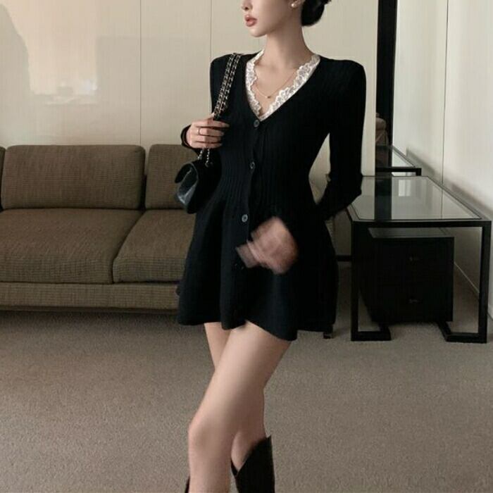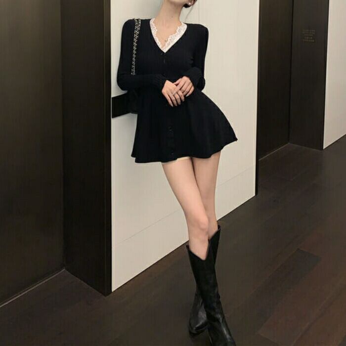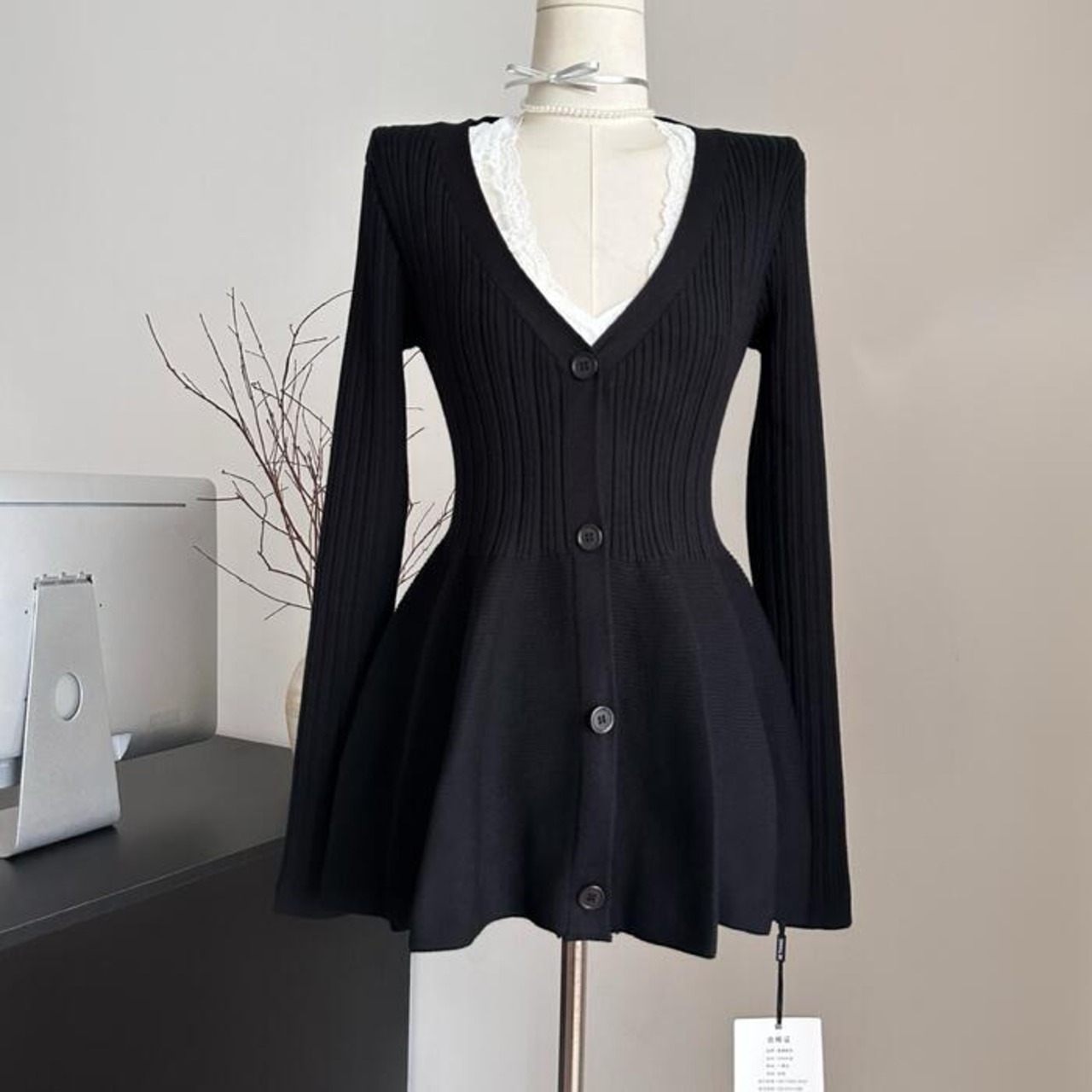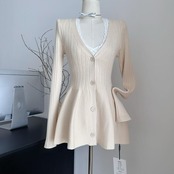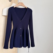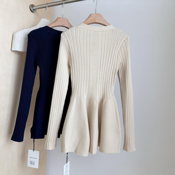 全3色 大きいサイズ 体型カバー エレガント フェミニン おしゃれ 羽織り トップス ニット カーディガン レディース きれいめ カジュアル 大人可愛い 春 秋 冬 リブ ワンピース 長袖 ペプラム フレア 無地 Vネック ネイビー ブラック 黒 ベージュ 20代 30代 40代 50代 フリー