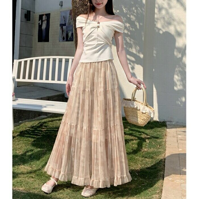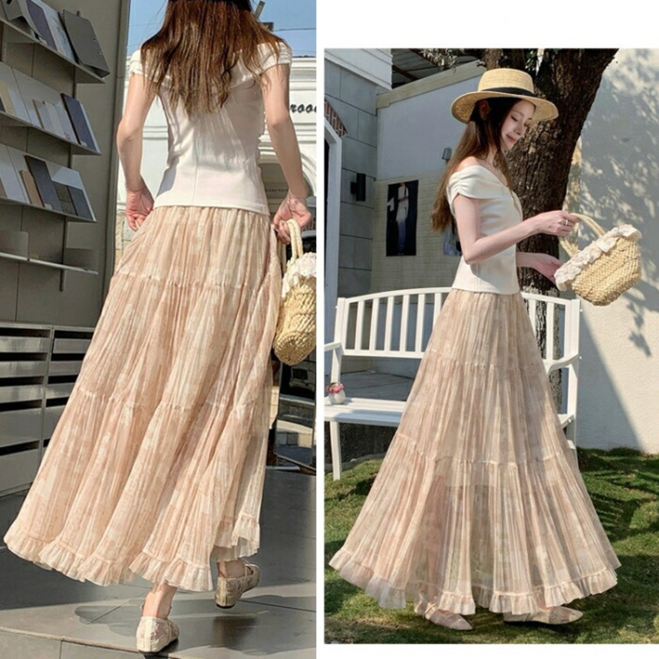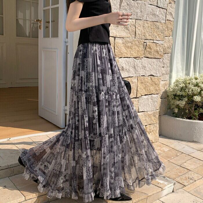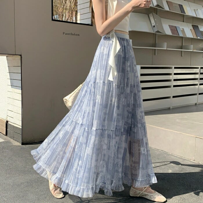 透け感のある軽やかな素材のシアーティアードスカート。