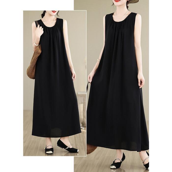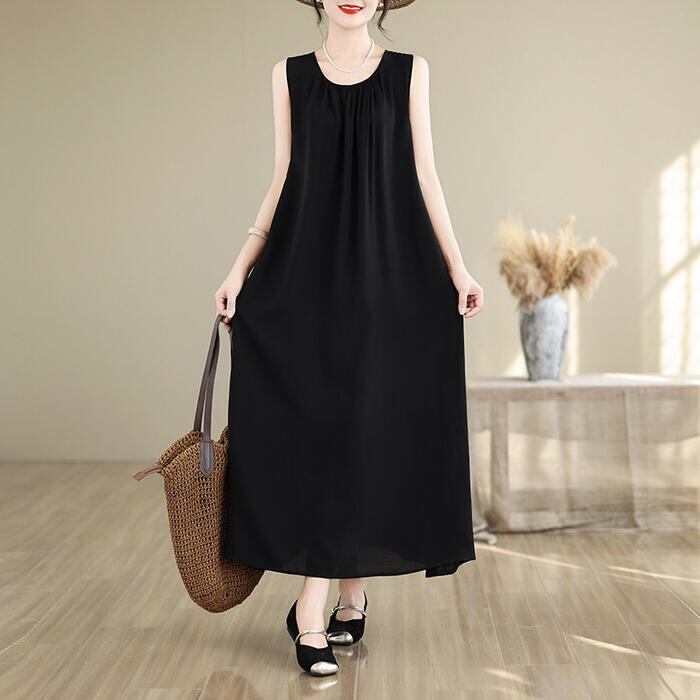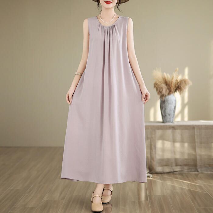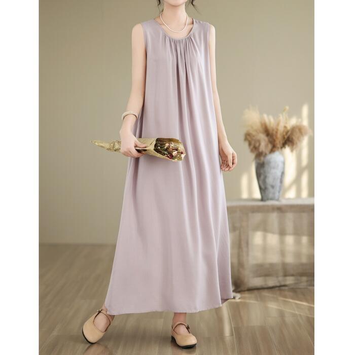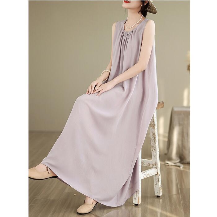 全4色 大きいサイズ 体型カバー エレガント フェミニン おしゃれ シンプル 無地 ワンピース ドレス レディース きれいめ カジュアル 大人可愛い 春 秋 夏 ノースリーブ プルオーバー ロング丈 Aライン パープル 紫 グレー ブラック 黒 ベージュ 20代 30代 40代 50代 XL 2XL 3XL 4XL 5XL