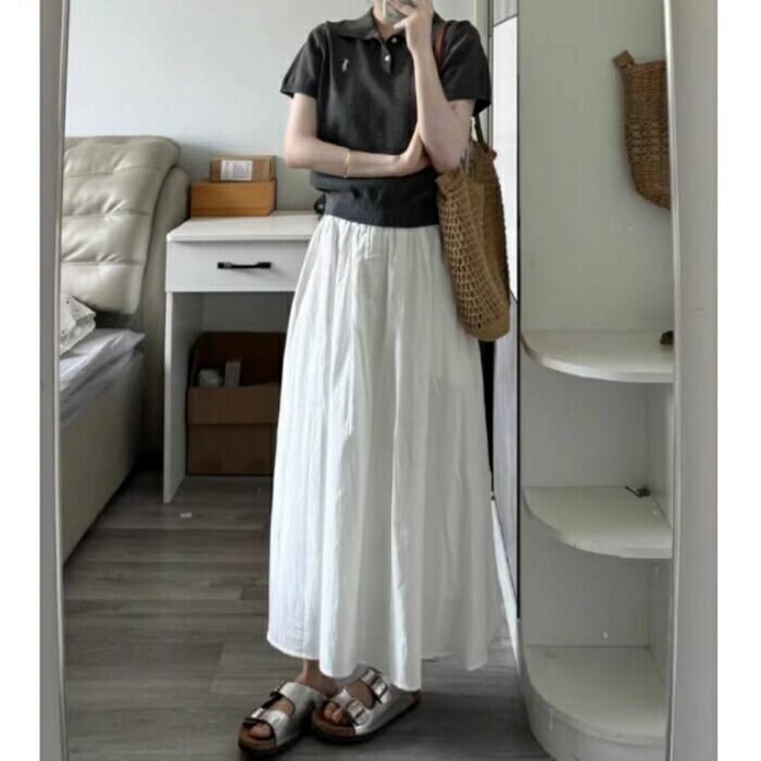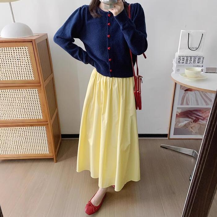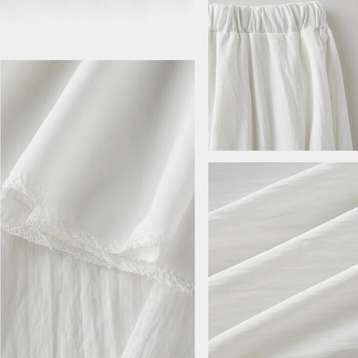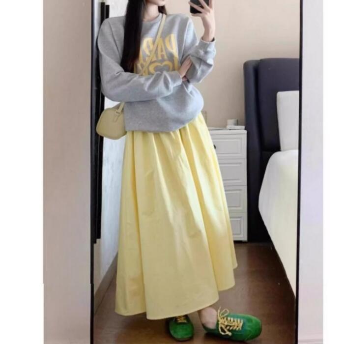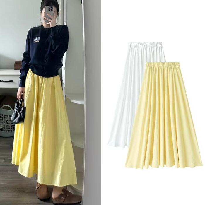 全2種2色 大きいサイズ 体型カバー エレガント フェミニン おしゃれ 楽ちん リゾート ボトムス スカート レディース きれいめ カジュアル 大人可愛い 春 秋 夏 フレア ロング丈 ウエストゴム ハイウエスト 無地 Aライン イエロー ホワイト 白 20代 30代 40代 50代 S M L XL
