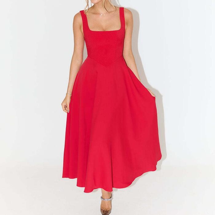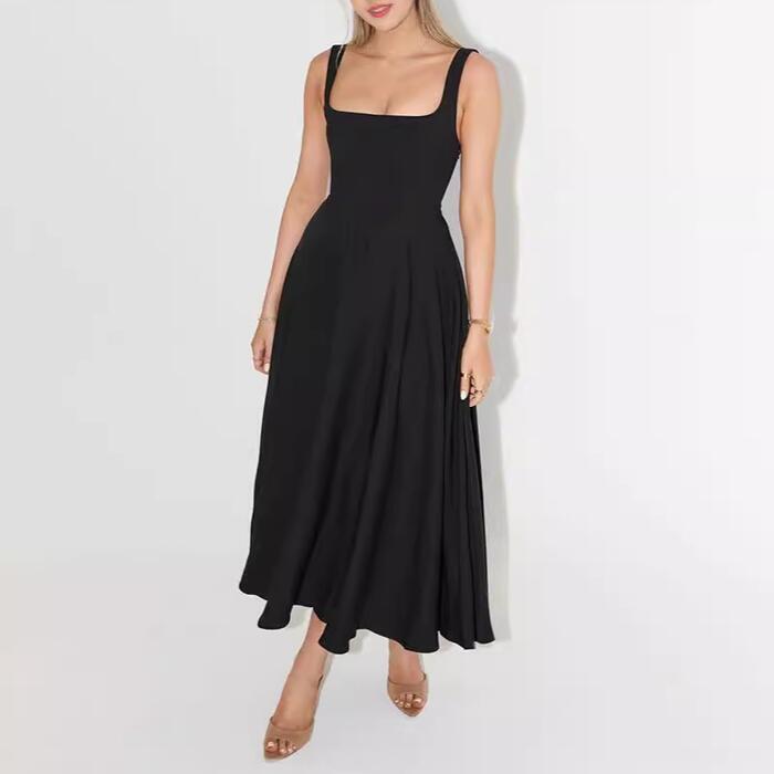 凛とした気品が漂う、洗練された雰囲気のスクエアネックロングワンピース。