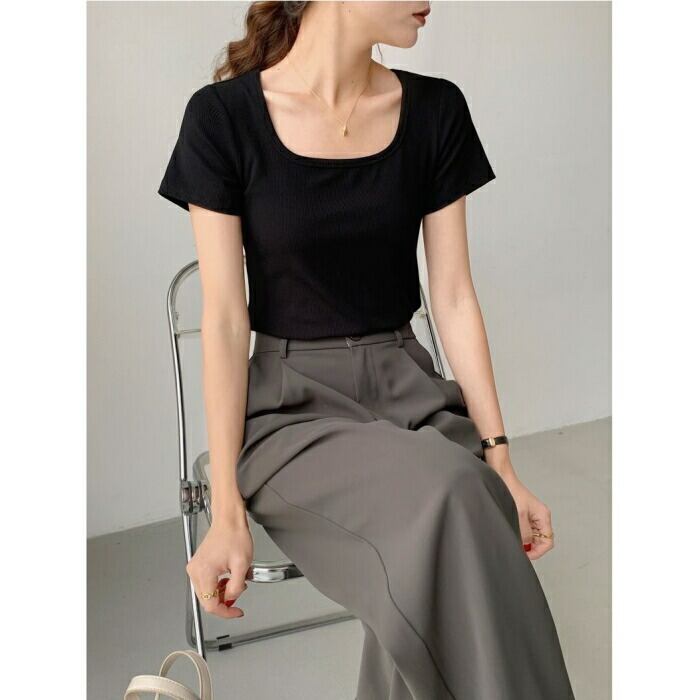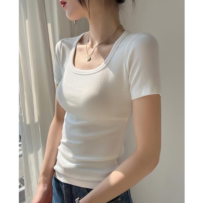 深すぎず浅すぎない絶妙なカッティングのUネックラインが、女性らしい華奢な鎖骨ラインを強調。