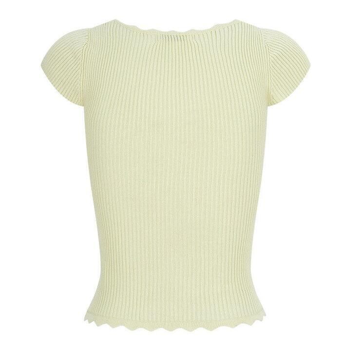 可憐な雰囲気漂う、繊細な編地が魅力のフロントリボンニットトップスです。