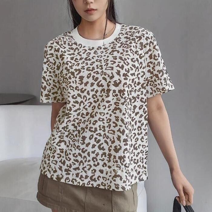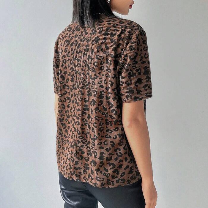 エッジの効いたスタイルを叶える、レオパード柄リブTシャツです。