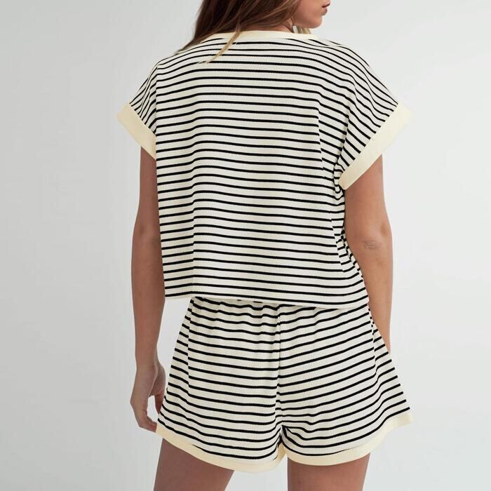 トップスとショートパンツの2点セットで、リラックス感がありながらもおしゃれに決まるアイテム。