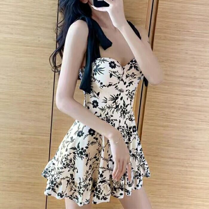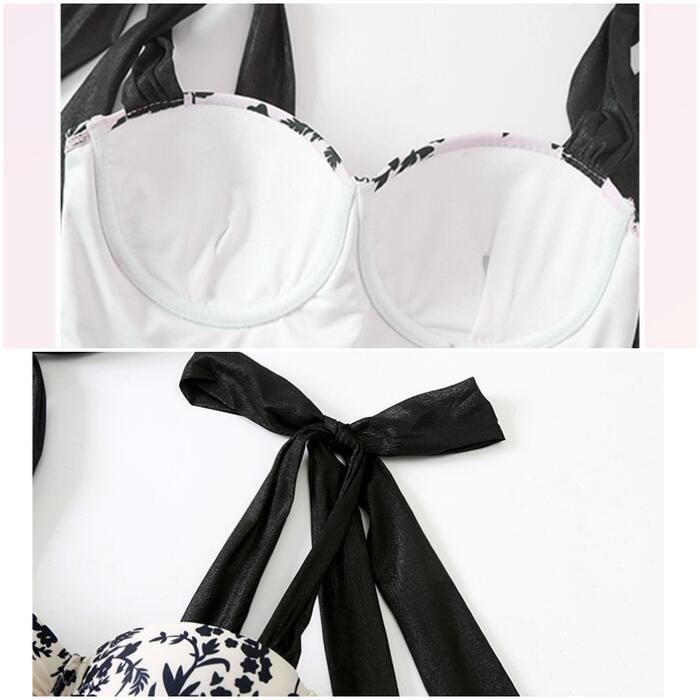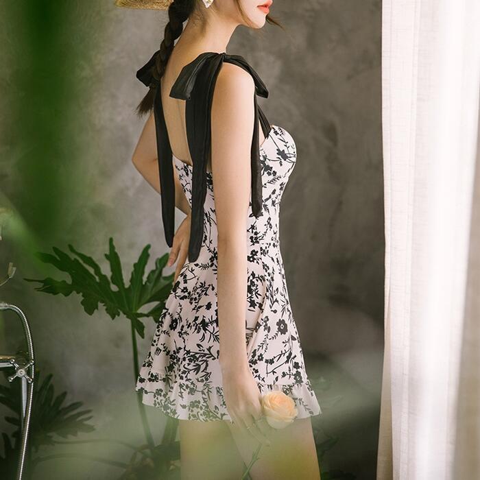 大きいサイズ 体型カバー エレガント フェミニン おしゃれ レトロ リゾート 海 プール 水着 ワンピース 春 秋 夏 レディース きれいめ カジュアル 大人可愛い スイムウェア インナー付き パンツ 花柄 フラワー ボタニカル リボン ホワイト 白 ブラック 黒 20代 30代 40代 50代 M L XL