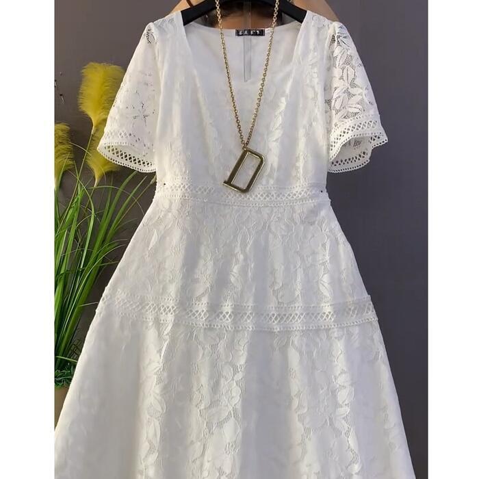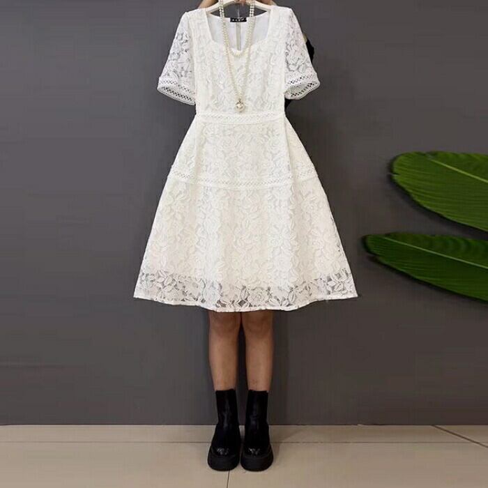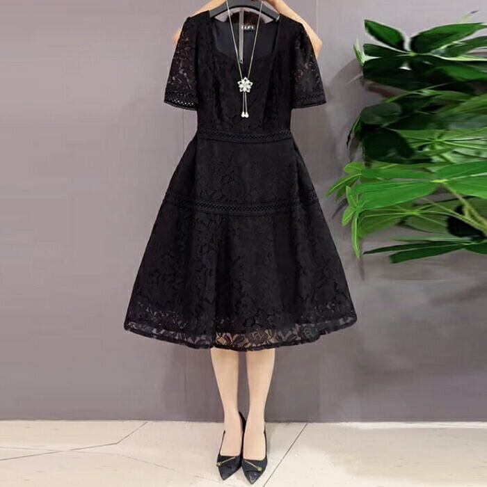 全2色 大きいサイズ 体型カバー エレガント フェミニン おしゃれ シンプル オケージョン ワンピース ドレス レディース きれいめ カジュアル 大人可愛い 春 秋 夏 レース 半袖 ひざ丈 ティアード 透け感 Aライン ミディ丈 ブラック 黒 ホワイト 白 20代 30代 40代 50代 3XL 4XL 5XL 6XL
