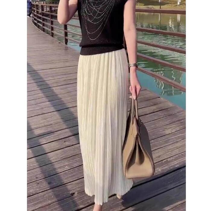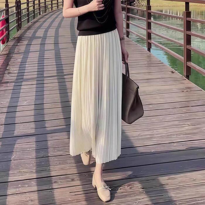 大きいサイズ 体型カバー エレガント フェミニン おしゃれ 楽ちん ボトムス スカート レディース きれいめ カジュアル 大人可愛い 春 秋 夏 フレア ロング丈 プリーツ ウエストゴム ハイウエスト 無地 Aライン ベージュ 20代 30代 40代 50代 M L XL 2XL 3XL 4XL