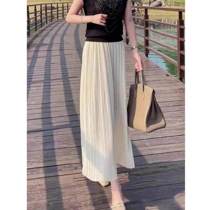 繊細なプリーツが歩くたびに美しく揺れるフレアスカート。