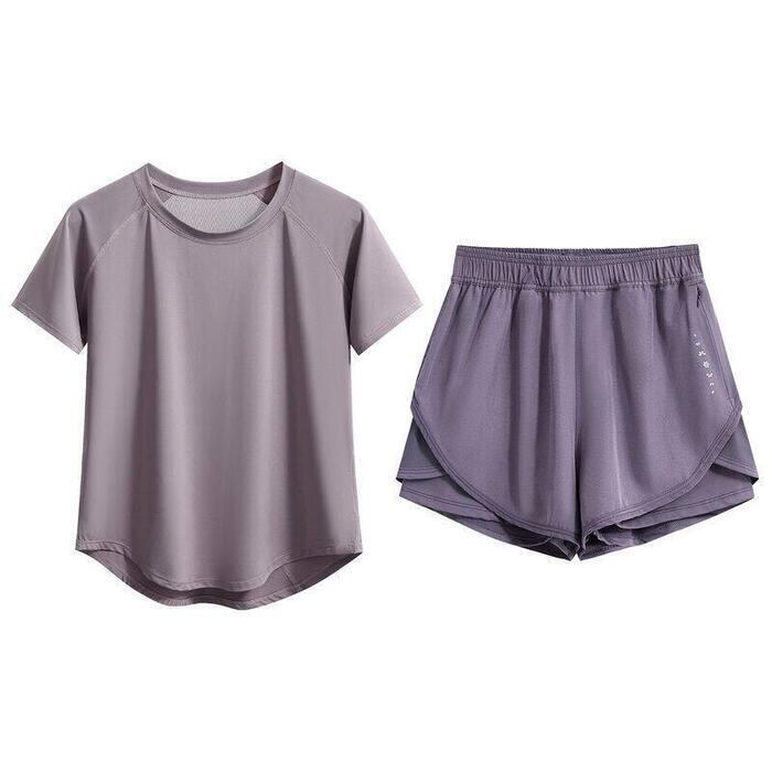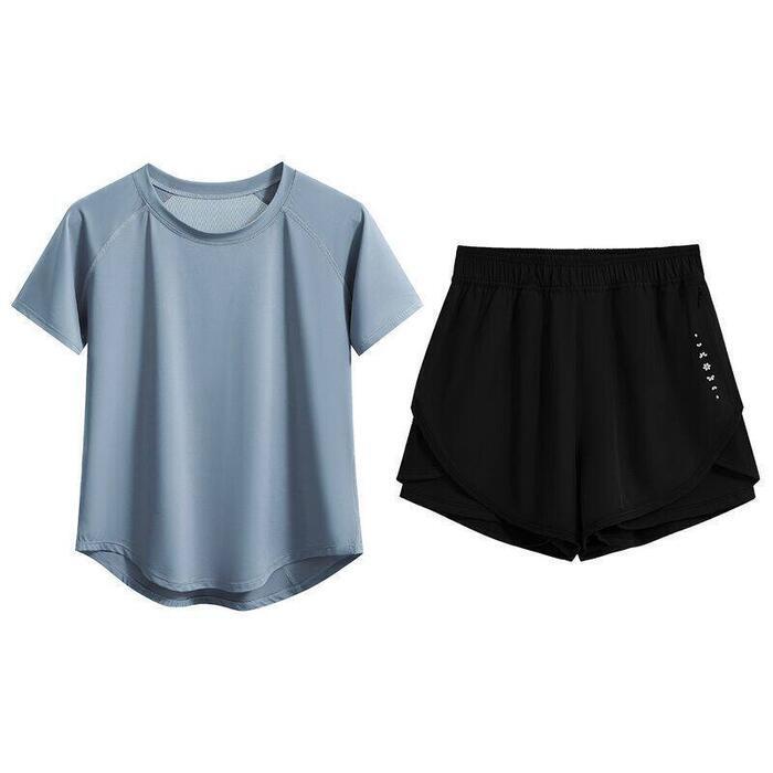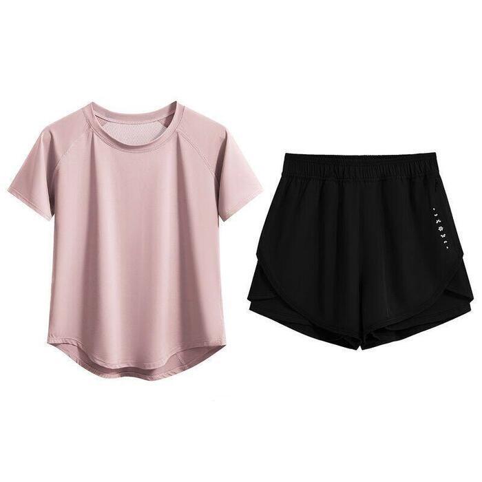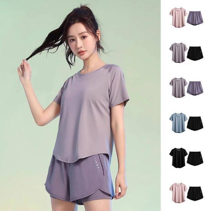 全6色 大きいサイズ 体型カバー フェミニン おしゃれ 2点セット スポーツ ワークアウト ジム 速乾 セットアップ トップス パンツ 春 秋 夏 レディース きれいめ カジュアル 大人可愛い Tシャツ ショートパンツ 半袖 ブラック 黒 ブルー 青 パープル ピンク 20代 30代 40代 50代 S M L XL 2XL 3XL