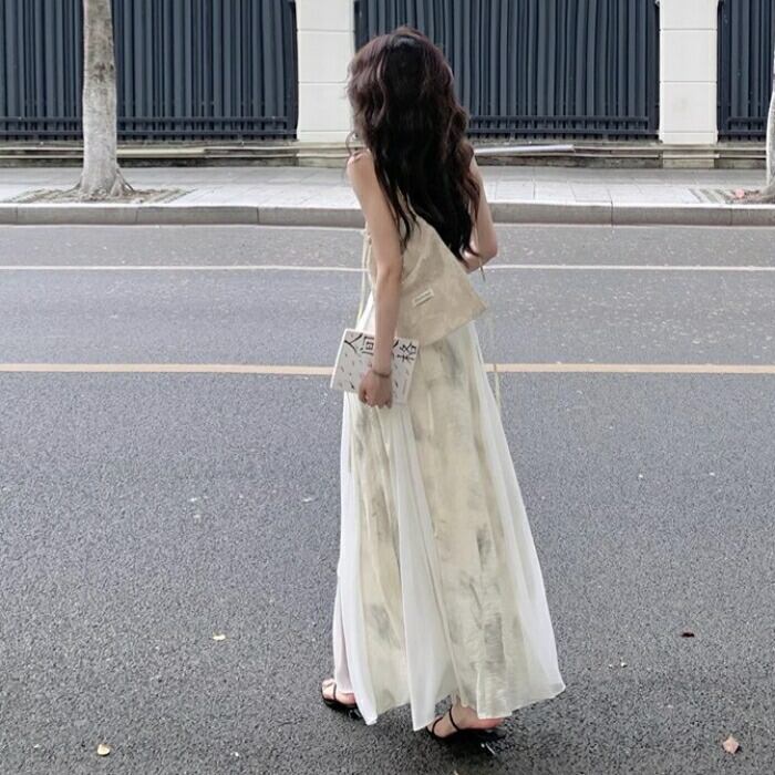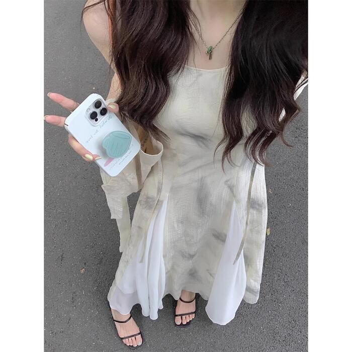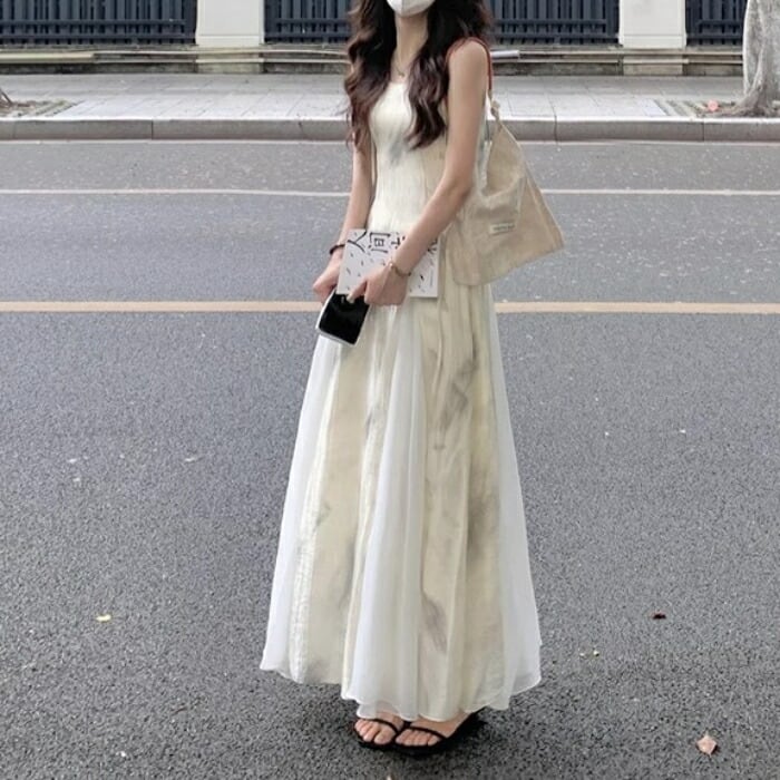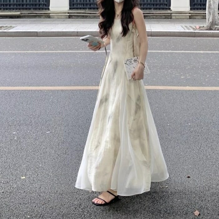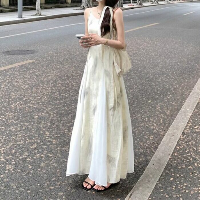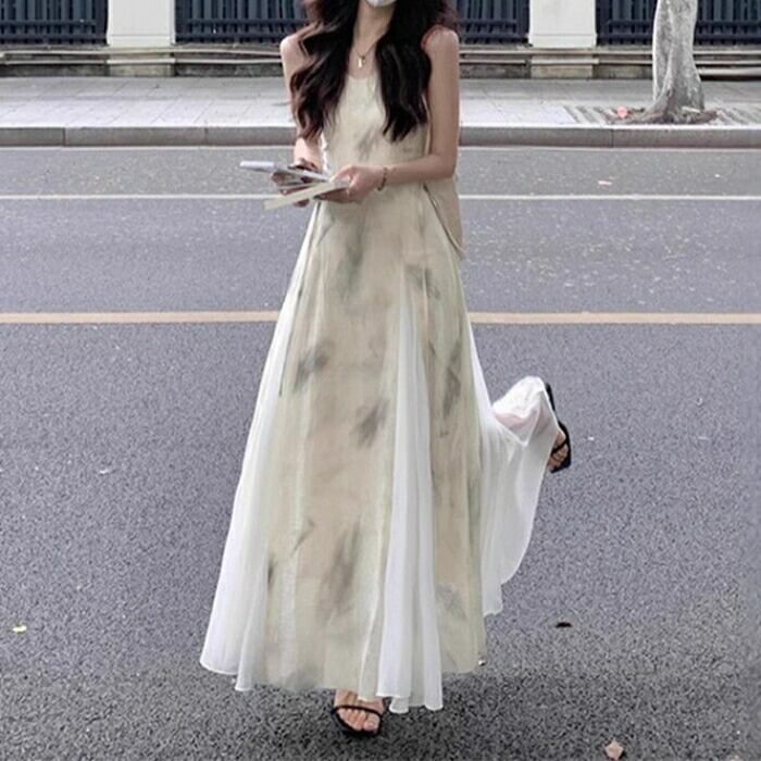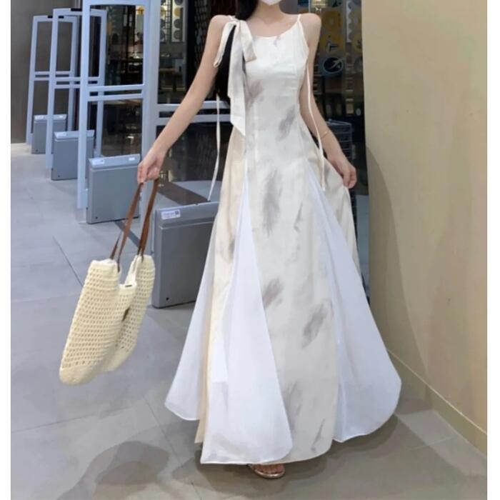 ニュアンスのあるタイダイ風の柄が可愛いロングワンピースです。