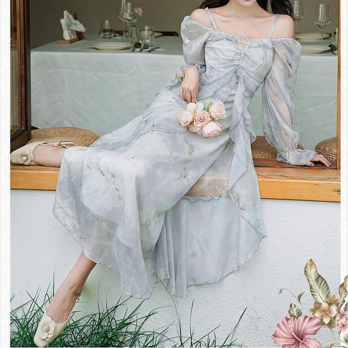 動くたびに幻想的な美しさを放つシフォンワンピースです。