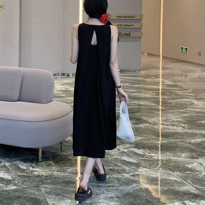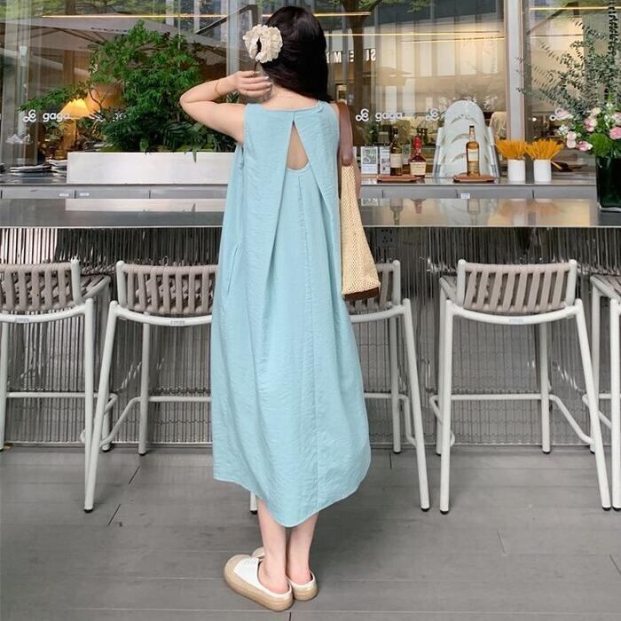 全3色 大きいサイズ 体型カバー エレガント フェミニン おしゃれ シンプル ワンピース ドレス レディース きれいめ カジュアル 大人可愛い 春 秋 夏 ノースリーブ ミモレ丈 ロングワンピ Aライン フレア ベージュ グリーン 緑 ブラック 黒 20代 30代 40代 50代 S M L XL