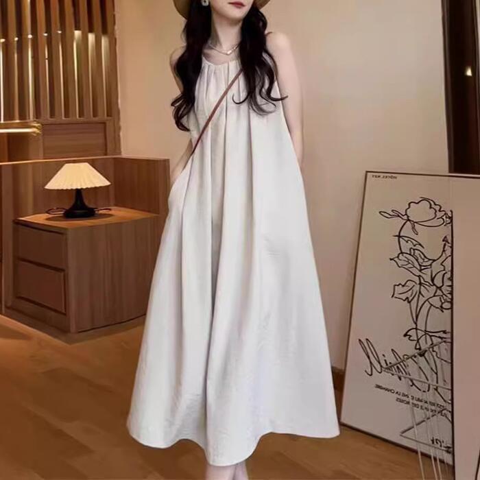 ふんわり優雅に揺れる、Aラインロングワンピースです。