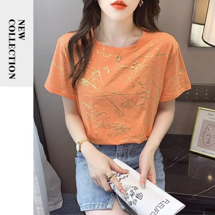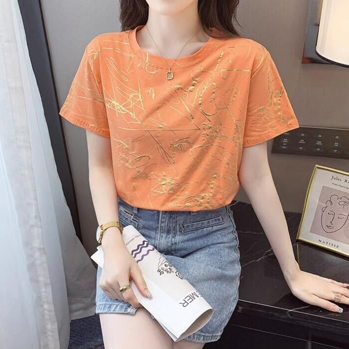 ゴールドのロゴグラフィックが、カジュアルな中にリッチな輝きを添えてくれる大人見えTシャツです。