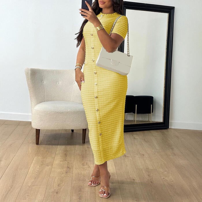 全8色 大きいサイズ エレガント フェミニン おしゃれ シンプル 無地 スリット ワンピース ドレス レディース きれいめ カジュアル 大人可愛い 春 秋 夏 半袖 ニット ロング丈 タイト スリム ホワイト 白 ベージュ ブルー 青 ピンク ブラック 黒 イエロー 20代 30代 40代 50代 S M L XL