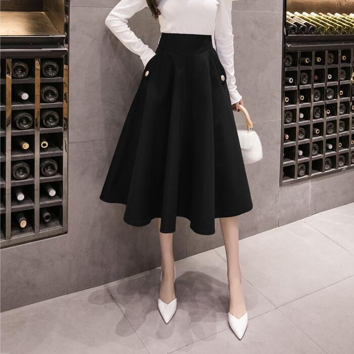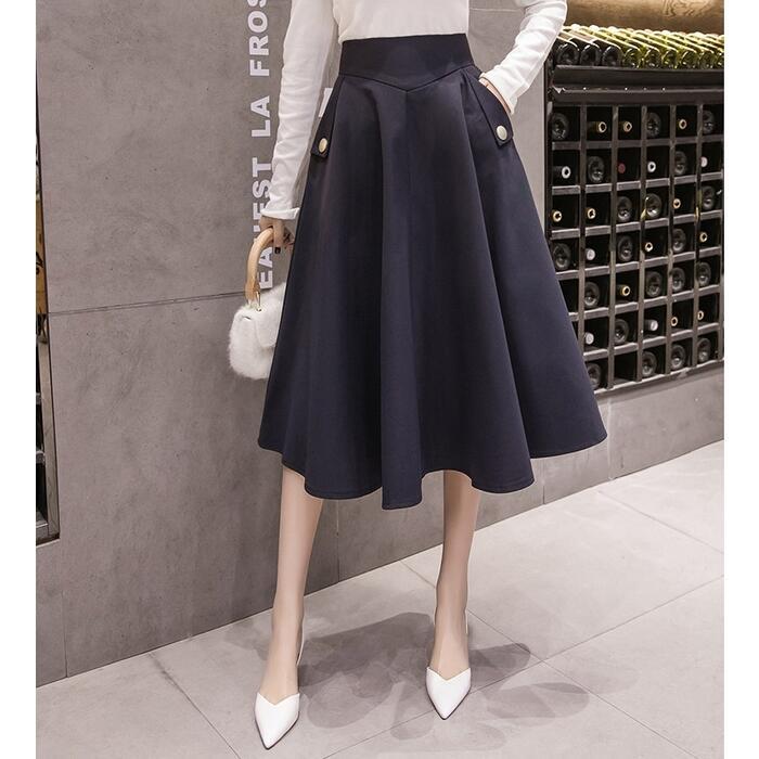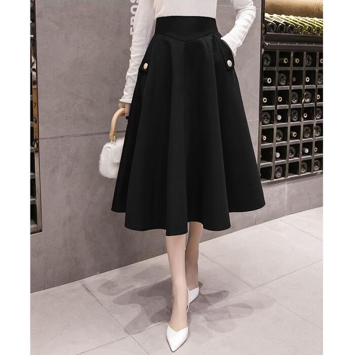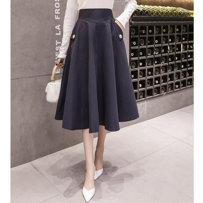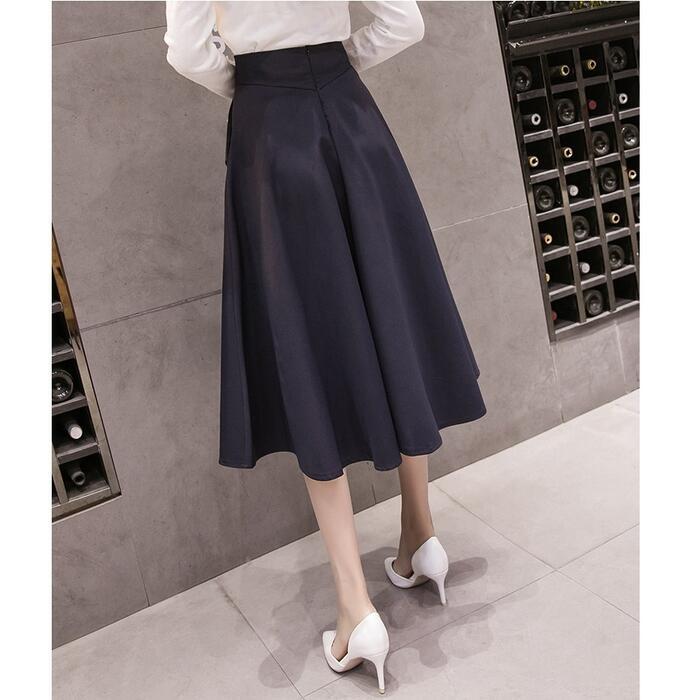 全2色 大きいサイズ 体型カバー エレガント フェミニン おしゃれ 通勤 オフィス ボトムス スカート レディース きれいめ カジュアル 大人可愛い 春 秋 夏 フレア ひざ丈 ミディ丈 無地 Aライン ハイウエスト ブラック 黒 ネイビー 20代 30代 40代 50代 S M L XL 2XL