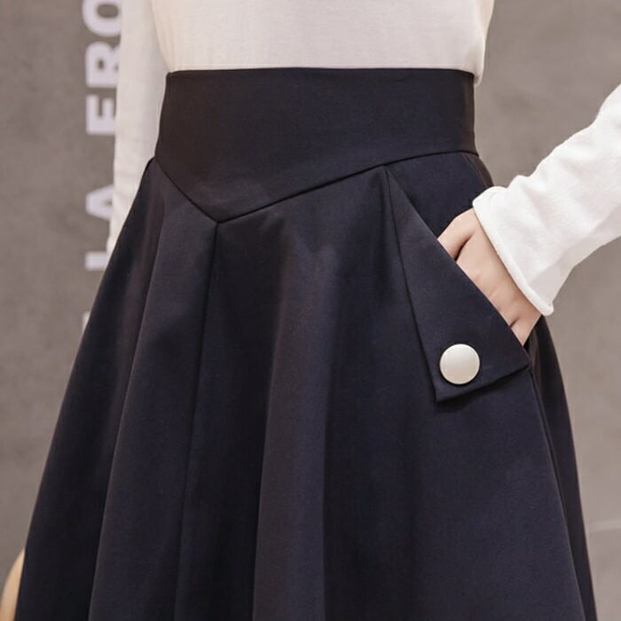 立体的なフレアラインが美しいミディ丈スカート。