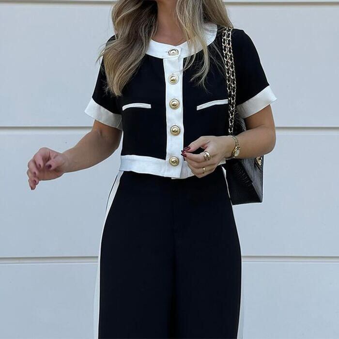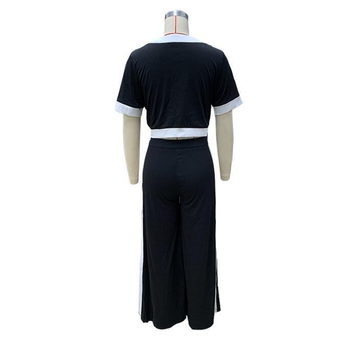 大きいサイズ 体型カバー フェミニン おしゃれ 2点セット セットアップ トップス パンツ レディース 春 秋 夏 きれいめ カジュアル 大人可愛い 半袖 ワイドパンツ 配色 ライン ショート丈 ロングパンツ ブラック 黒 20代 30代 40代 50代 S M L XL