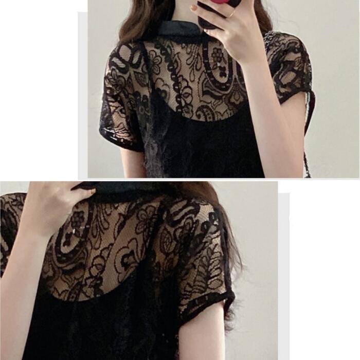 大きいサイズ エレガント フェミニン おしゃれ シンプル 2点セット ワンピース ドレス レディース きれいめ カジュアル 大人可愛い 春 秋 夏 セットアップ 半袖 レース ロング丈 キャミワンピ 透け感 Aライン ブラック 黒 20代 30代 40代 50代 S M L XL 2XL