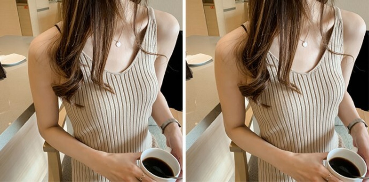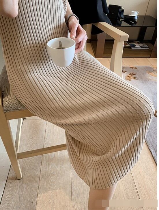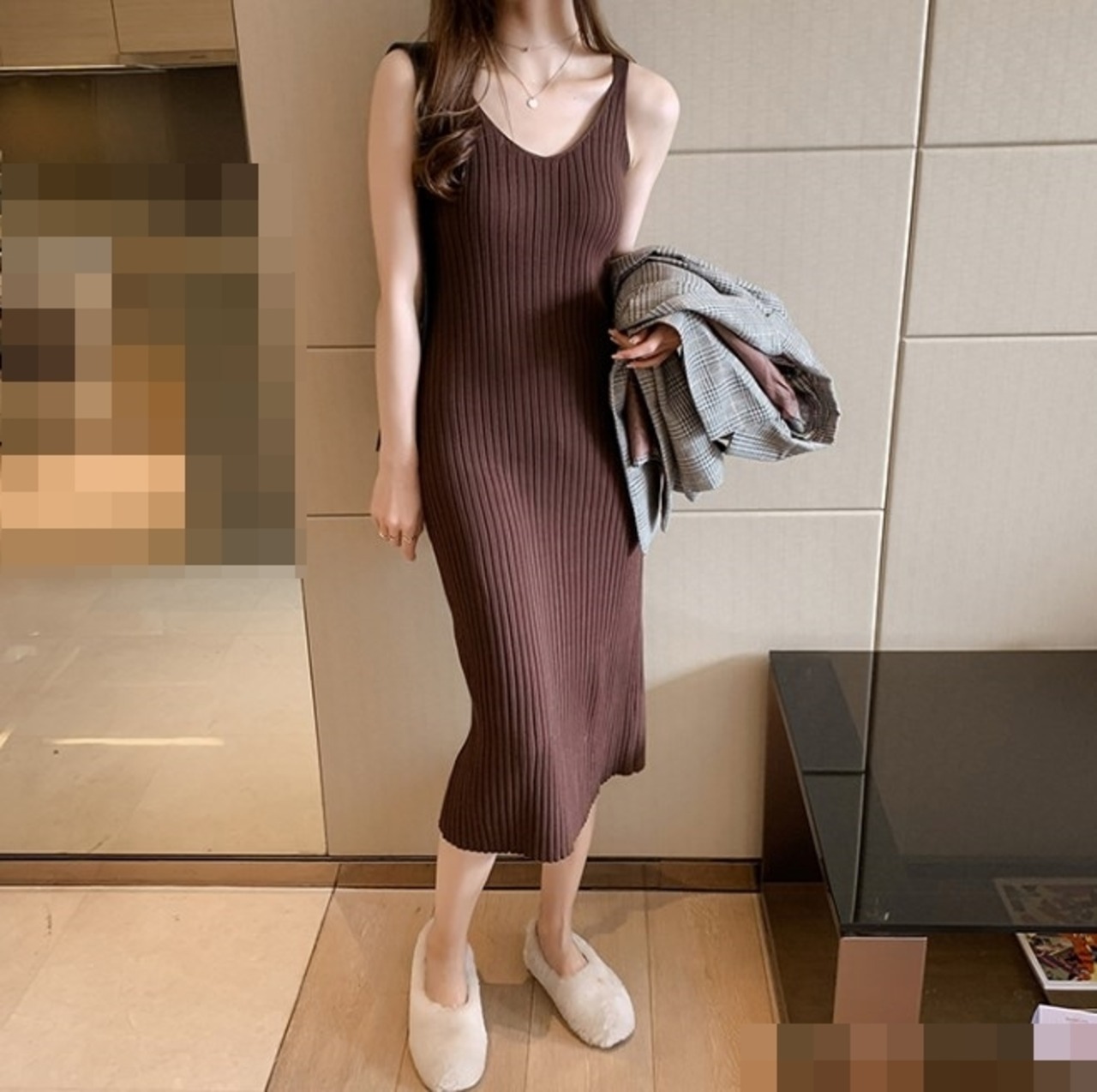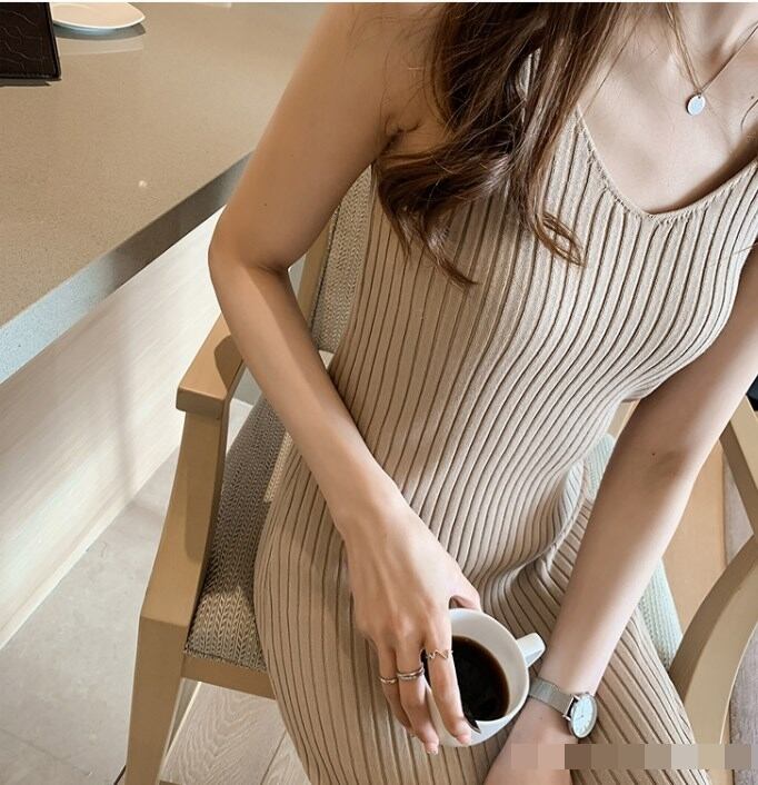 ノースリーブでセクシーな雰囲気のニットワンピース。