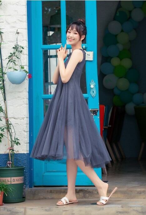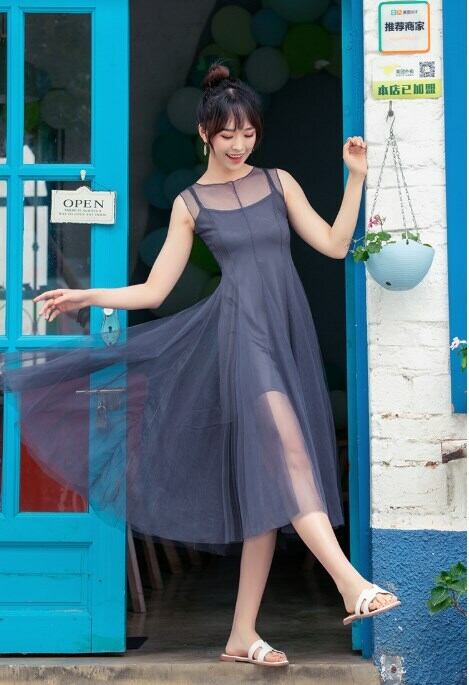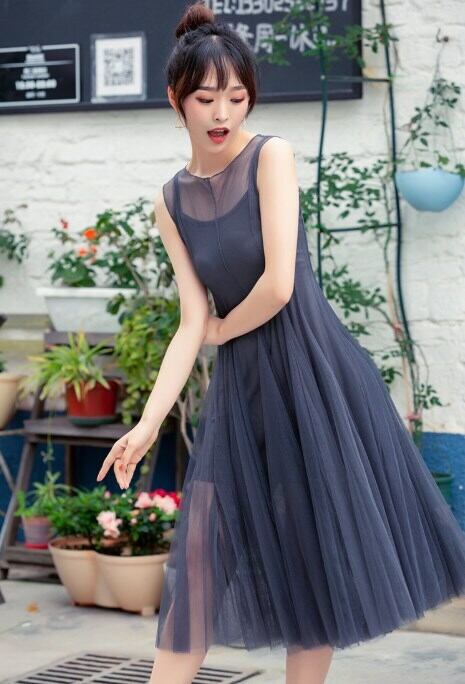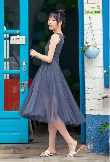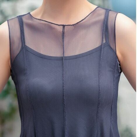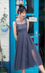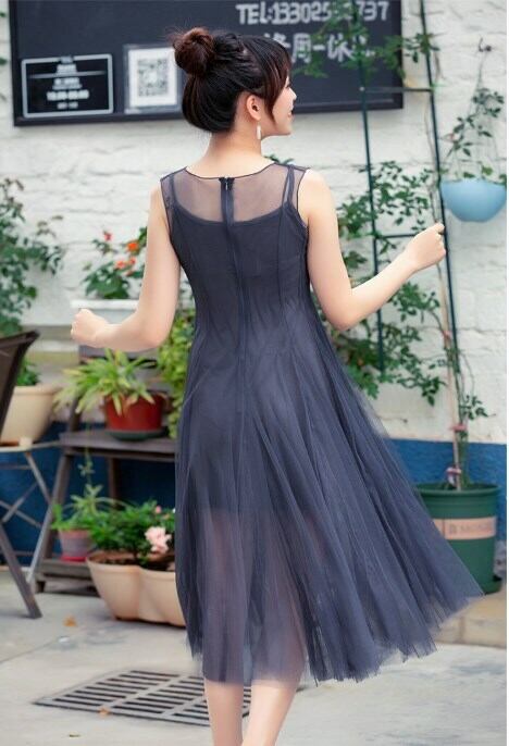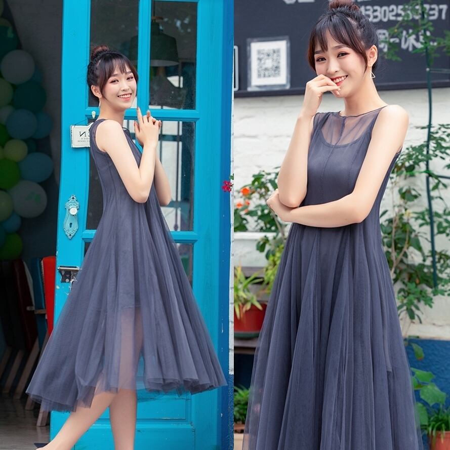 ワンピース レース ハイウェスト ロングスカート ロング丈 ポリエステル ラウンドネック ノースリーブ エレガント