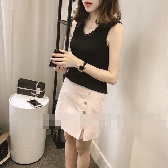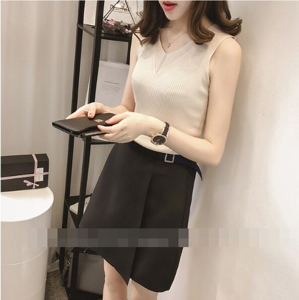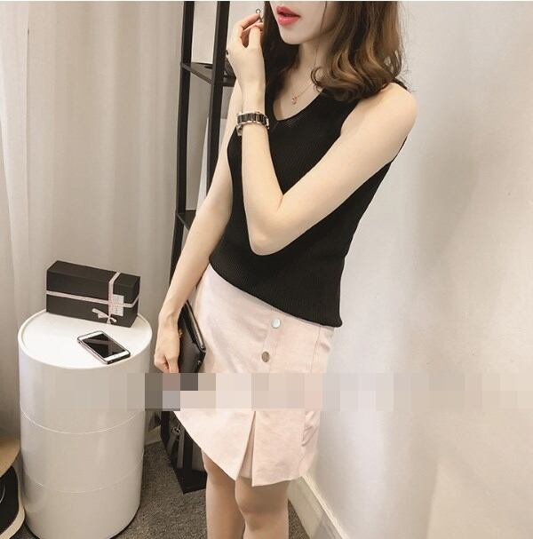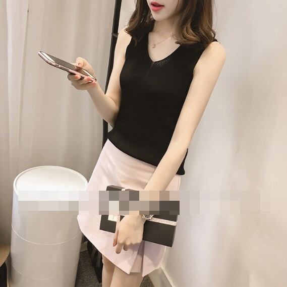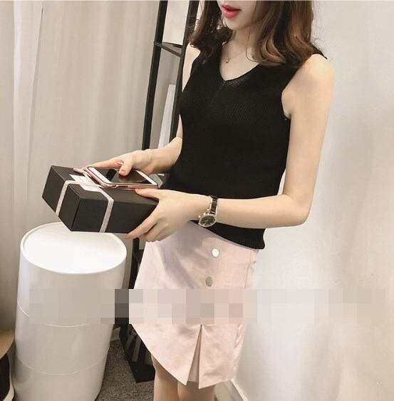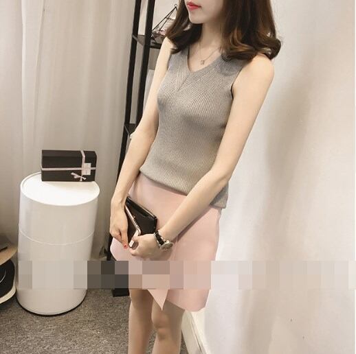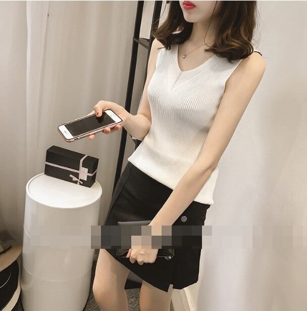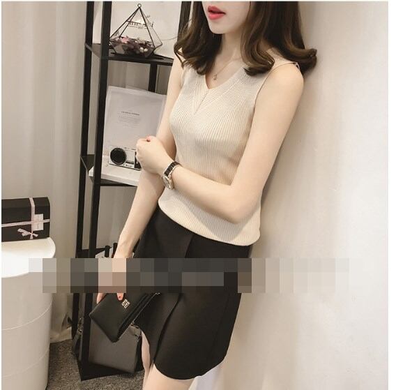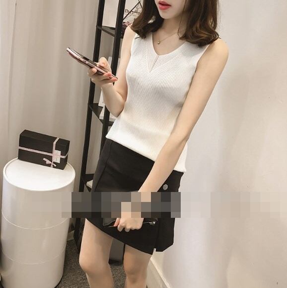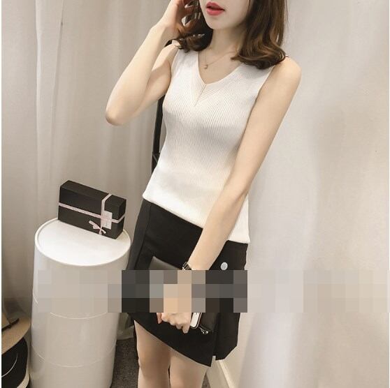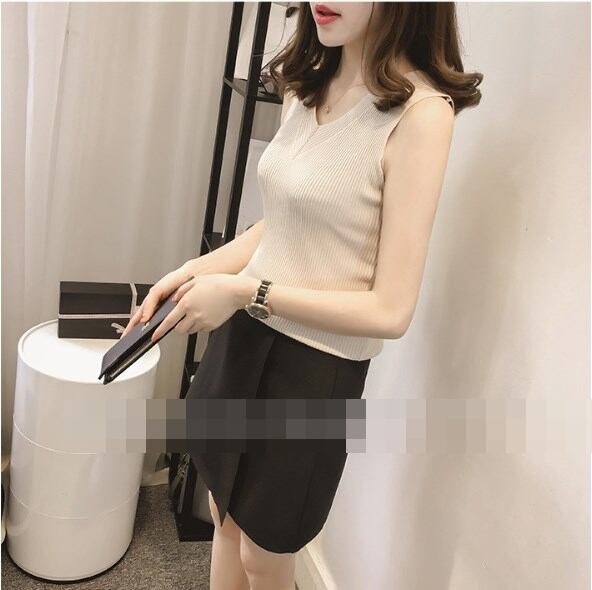 全4色 トップス ニットキャミソール ノースリーブ 無地 シンプル スリムフィット 甘め 夏 Vネック