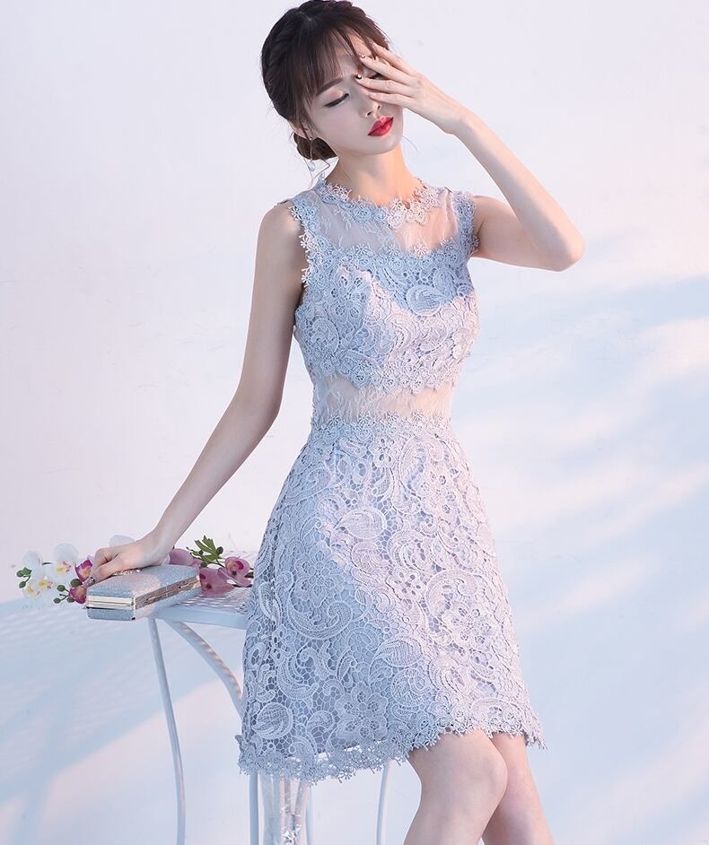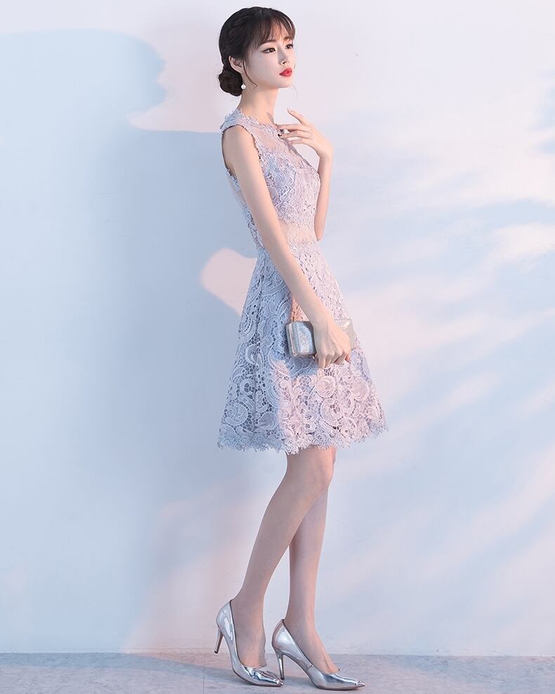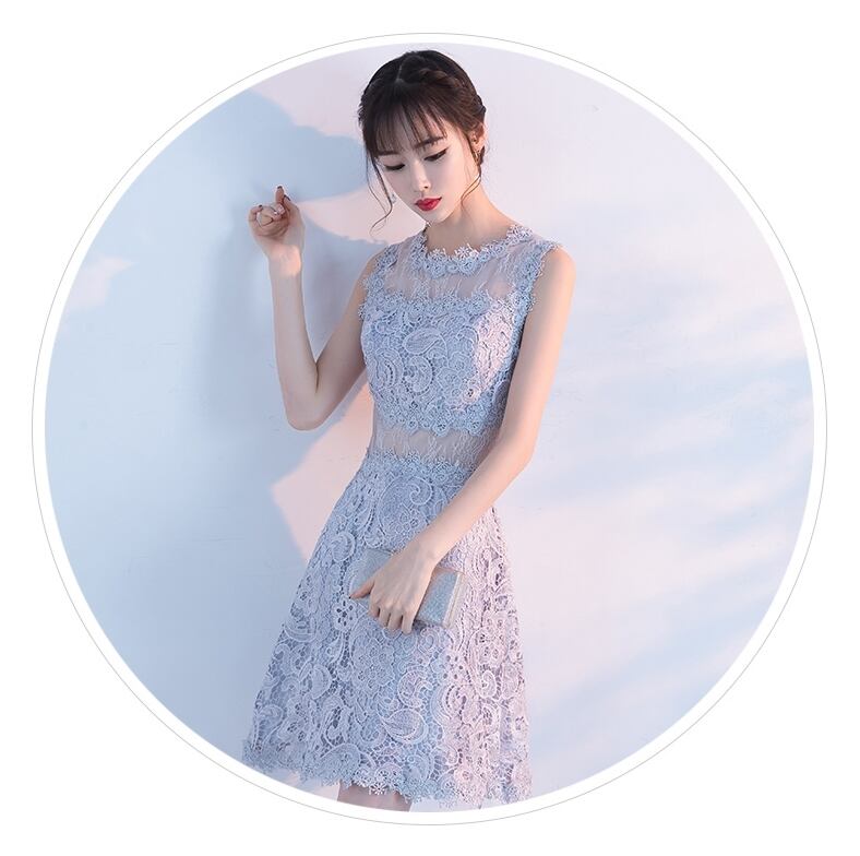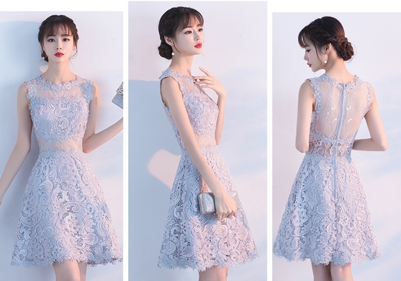 全6色 パーティードレス ワンピース ひざ丈 シースルー 上品 ノースリーブ エレガント レース 花柄 ラウンドネック お呼ばれ