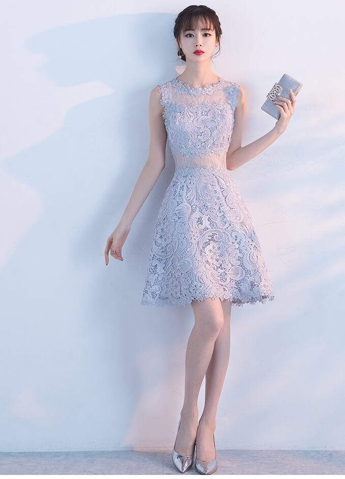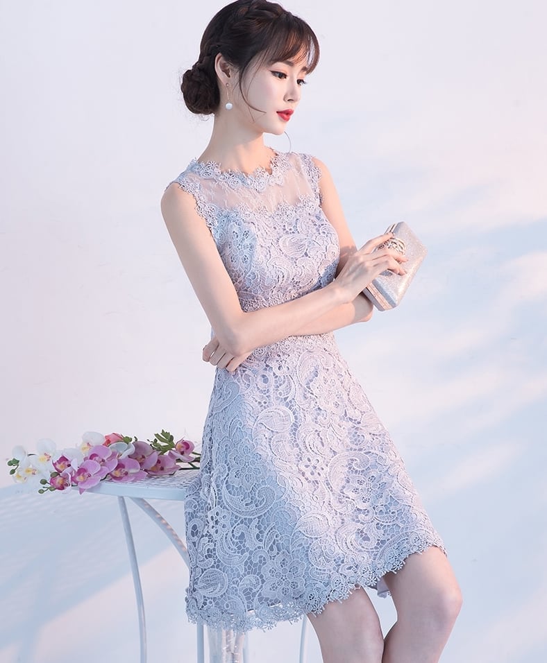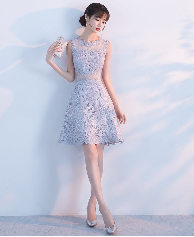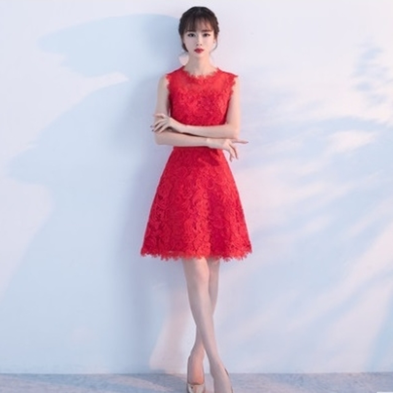 全6色 パーティードレス ワンピース ひざ丈 シースルー 上品 ノースリーブ エレガント レース 花柄 ラウンドネック お呼ばれ