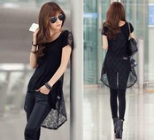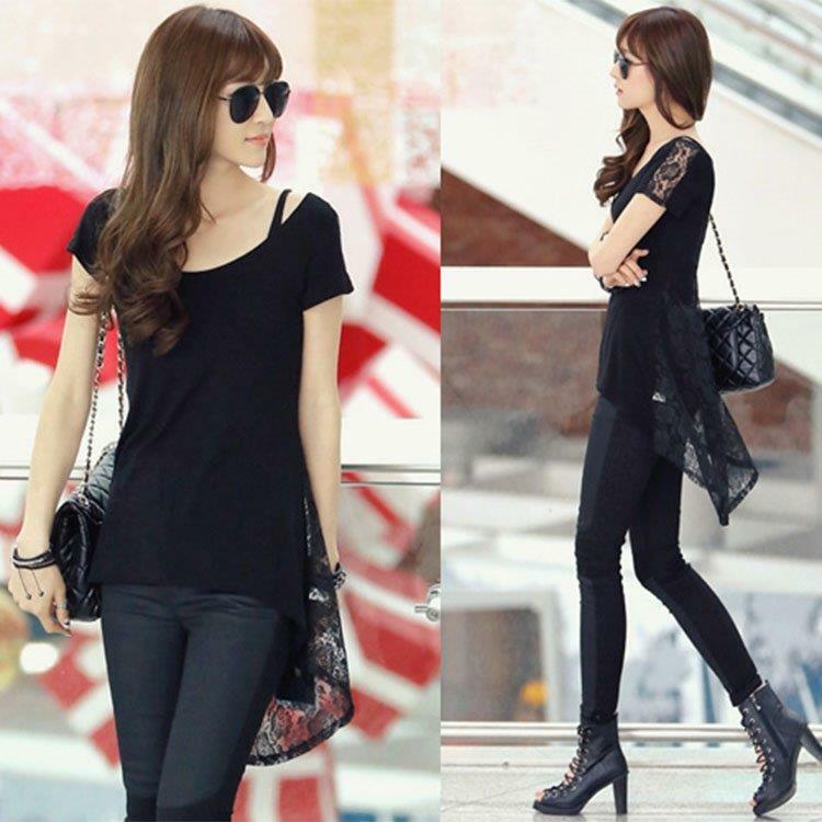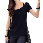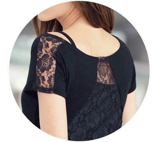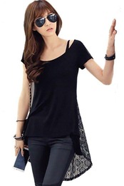 Tシャツ ラウンドネック レース フィッシュテール半袖 大人可愛い 春夏